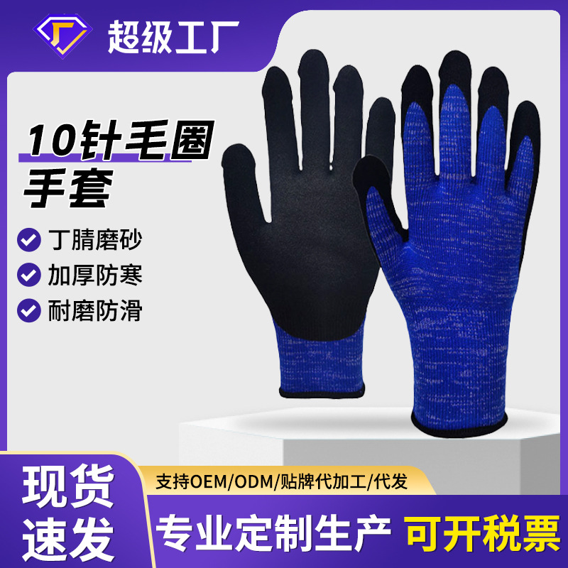 공장 직접 건설 현장 작업 10 핀 두꺼운 아크릴 장갑 미끄럼 방지 따뜻한 내마모성 보호 테리 장갑스토어 가기