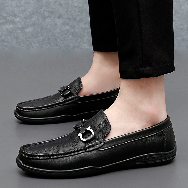 2023 가을과 겨울 새로운 완두콩 신발 남성용 영국식 슬립온 로퍼 부드러운 바닥 운전 캐주얼 가죽 신발