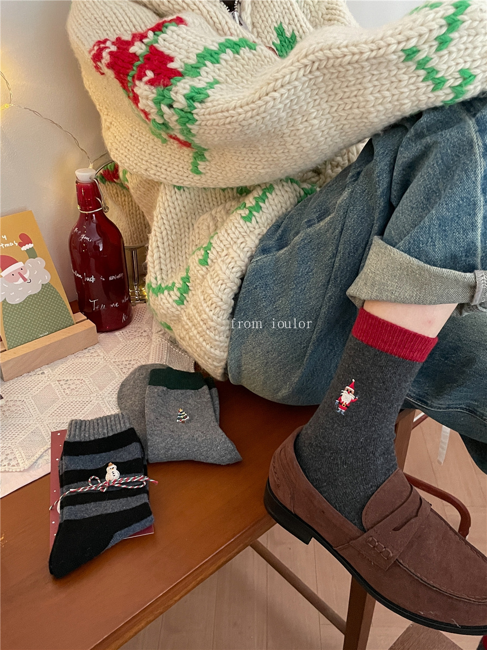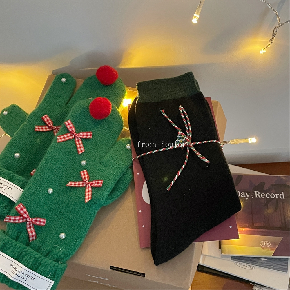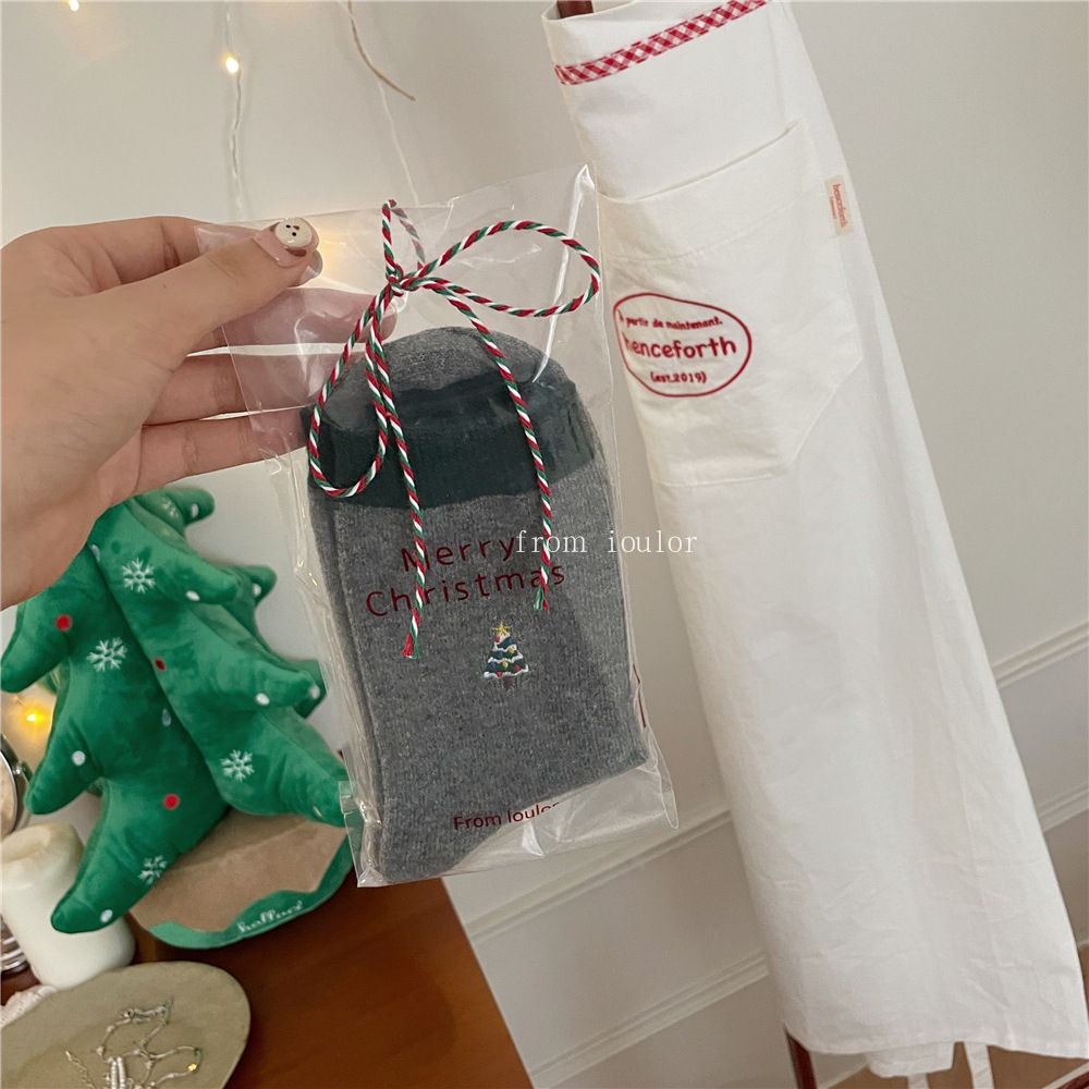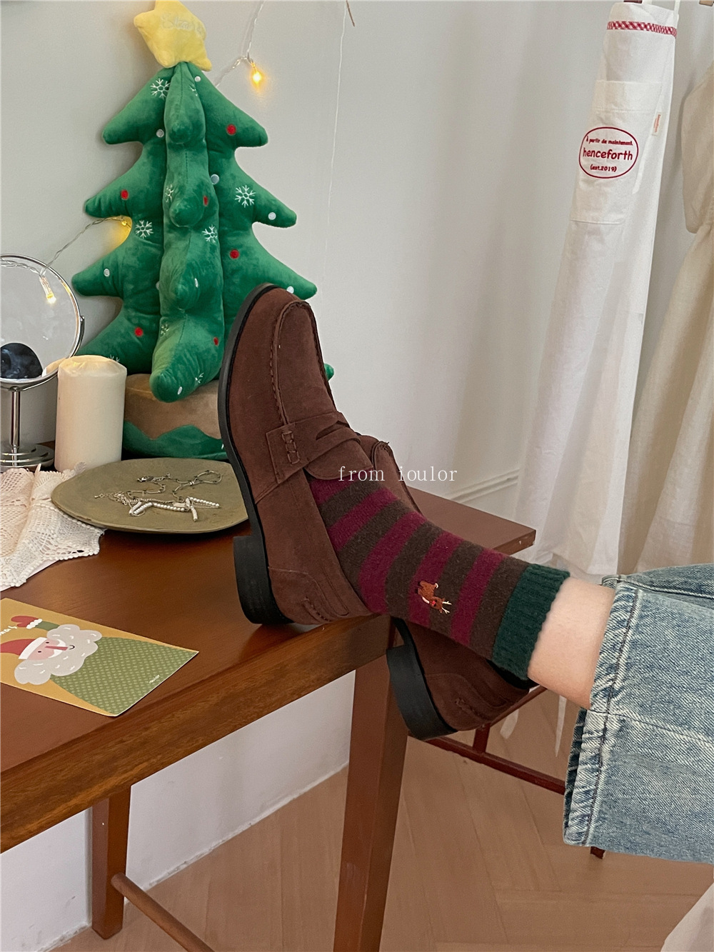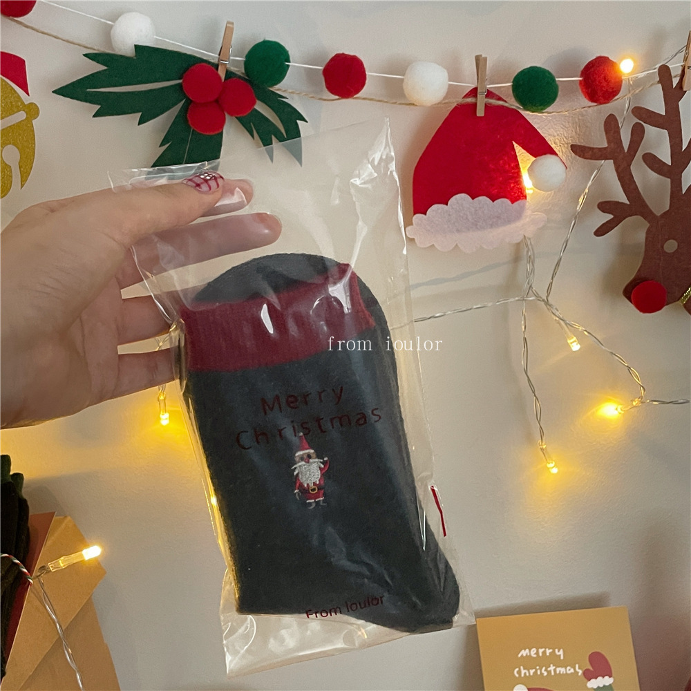 IOULOR 새로운 크리스마스 양말 양모 양말 눈사람 산타 클로스 스타일 중간 길이 양말 스트라이프 여성 양말