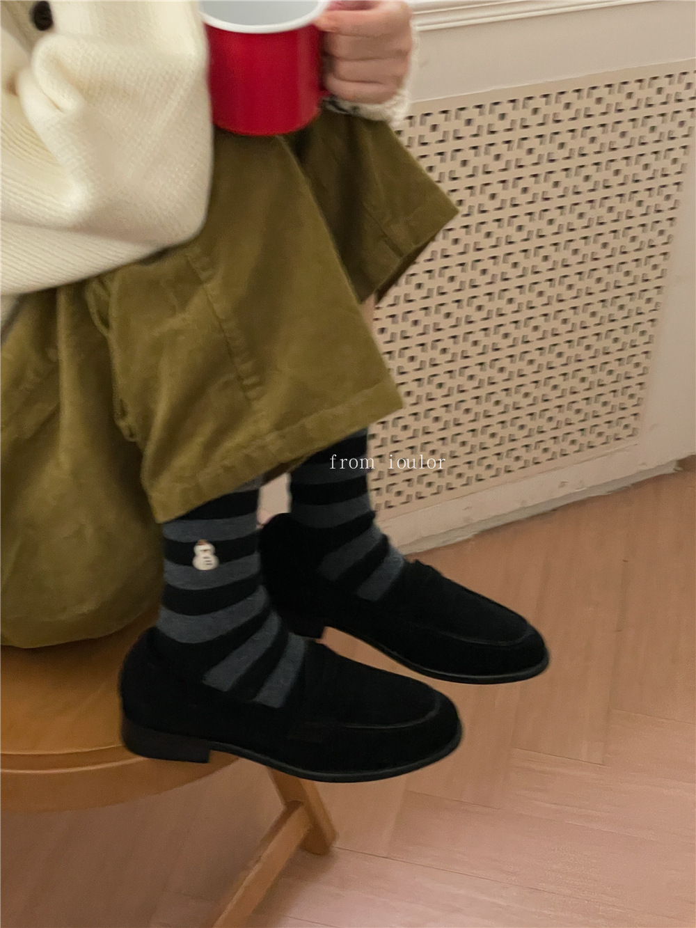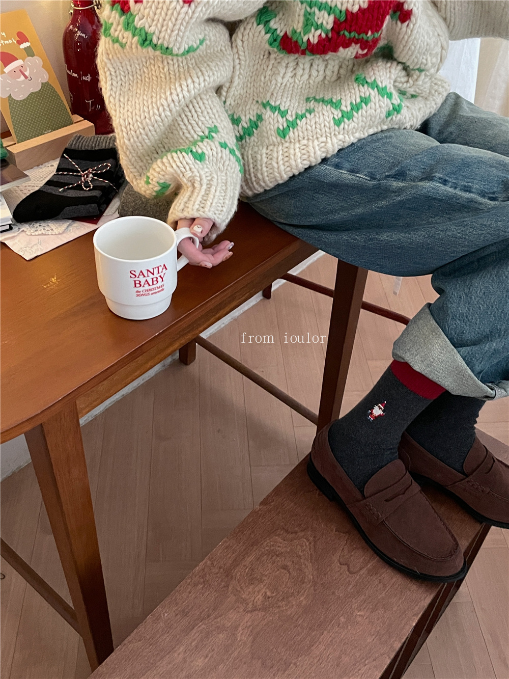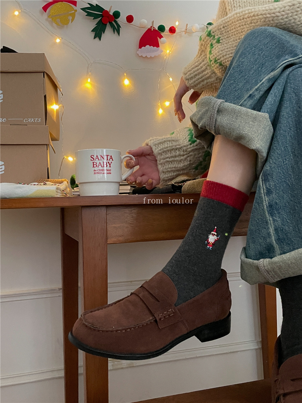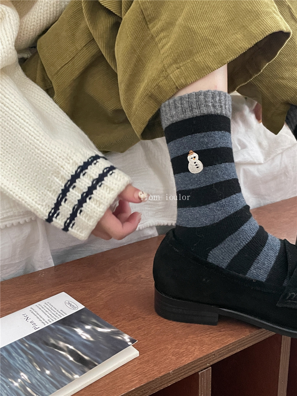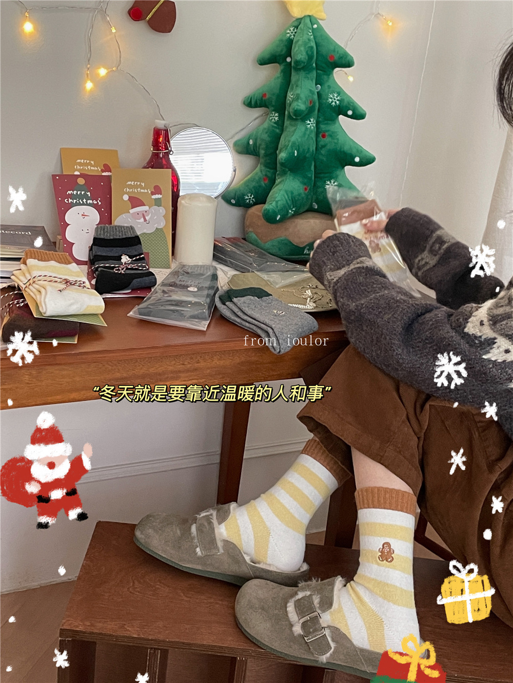 IOULOR 새로운 크리스마스 양말 양모 양말 눈사람 산타 클로스 스타일 중간 길이 양말 스트라이프 여성 양말