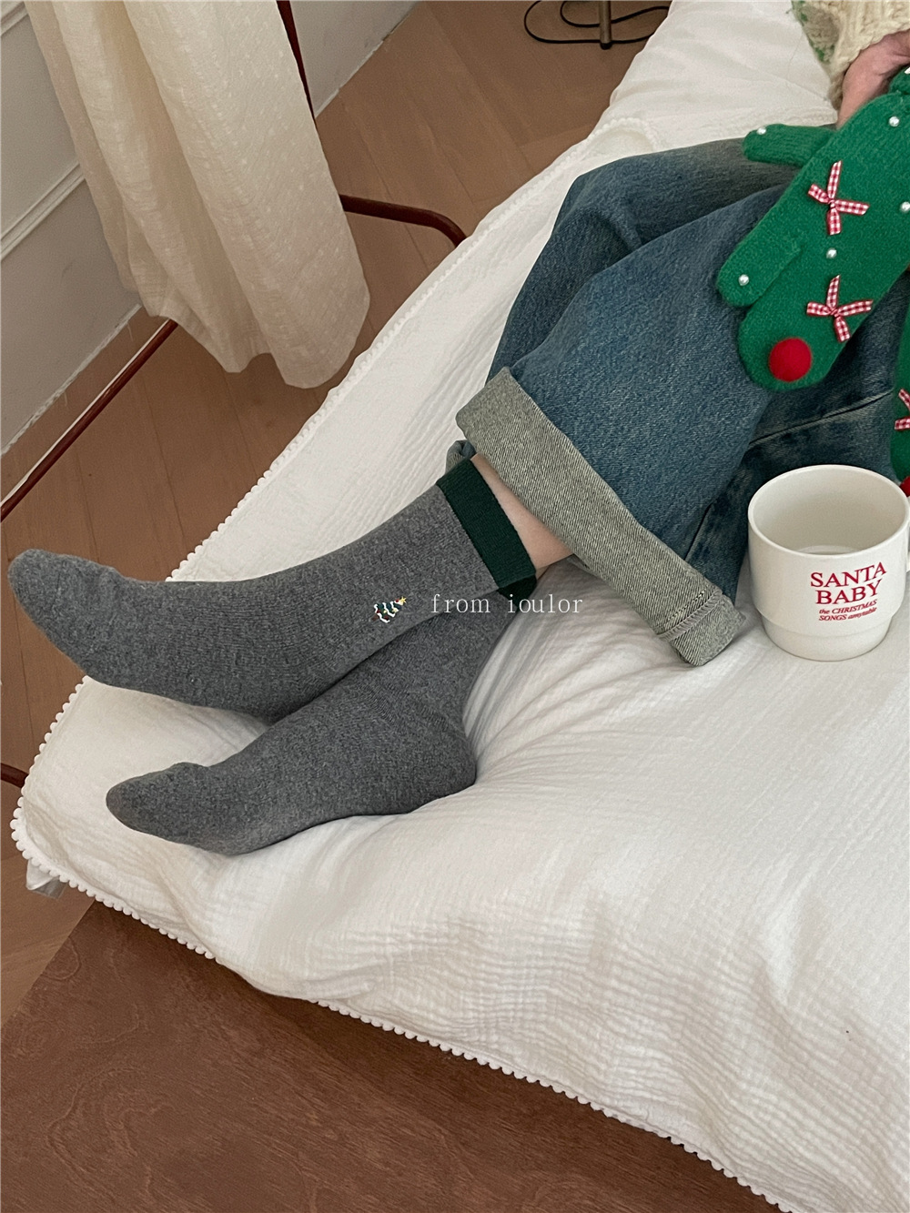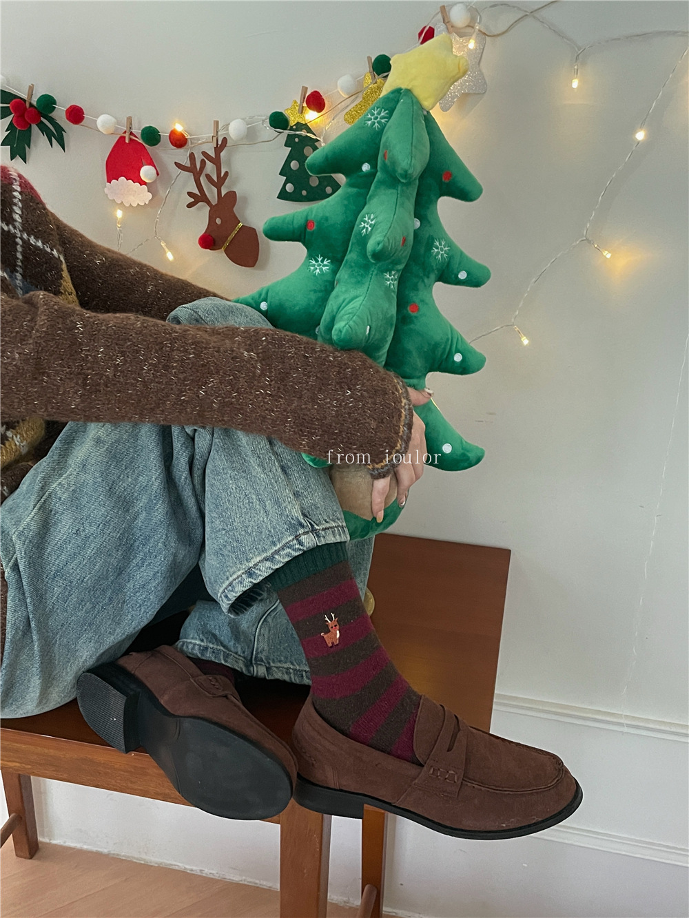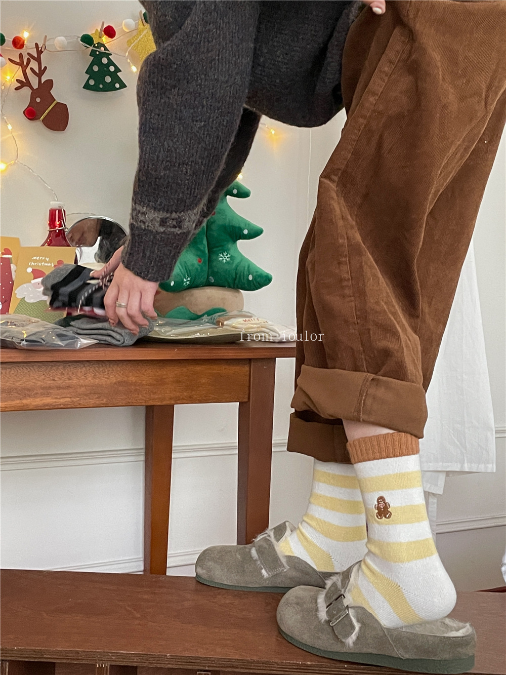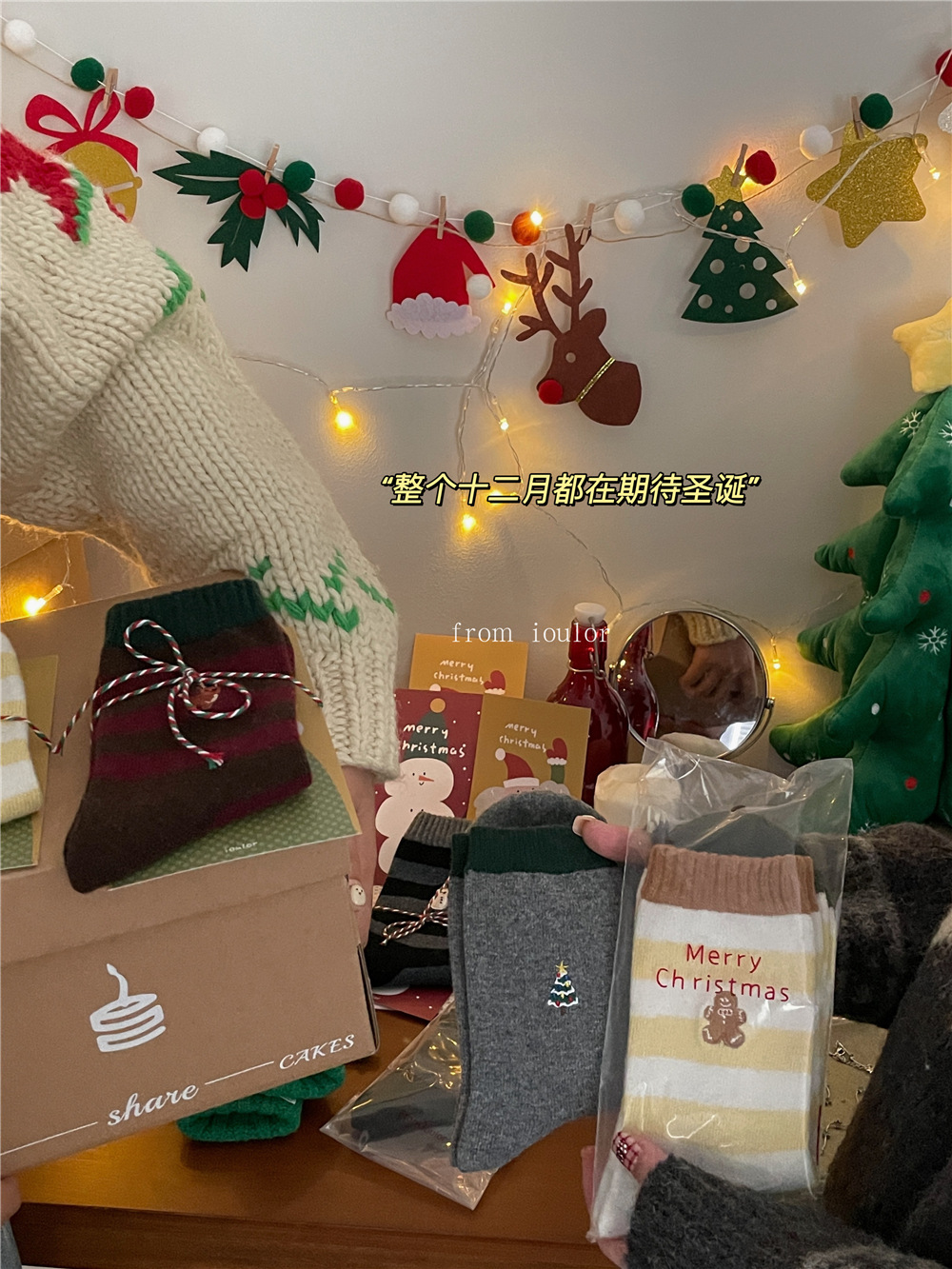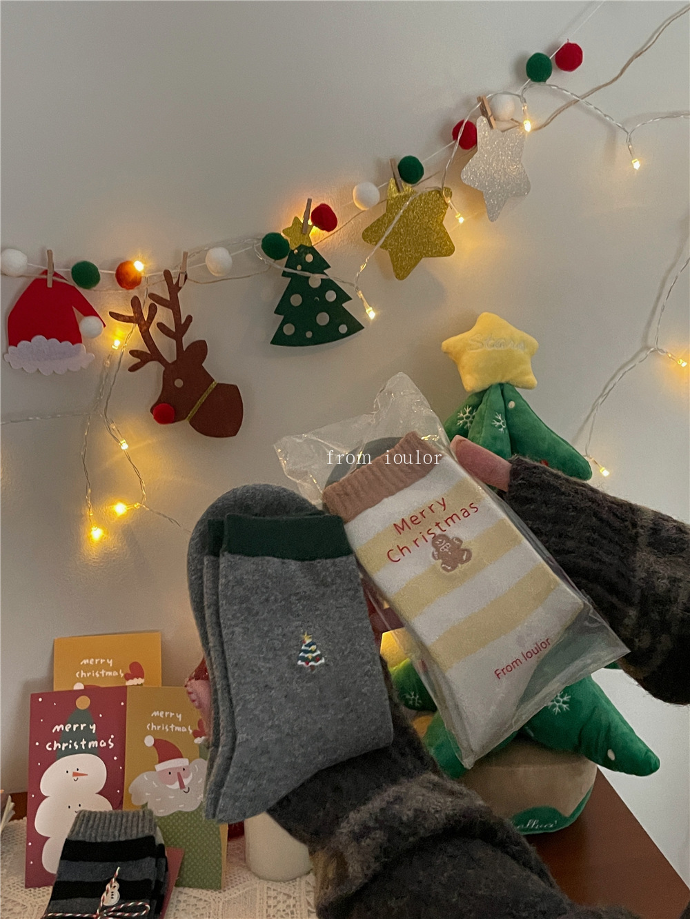 IOULOR 새로운 크리스마스 양말 양모 양말 눈사람 산타 클로스 스타일 중간 길이 양말 스트라이프 여성 양말스토어 가기