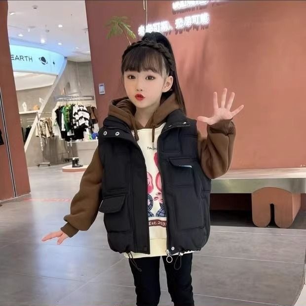 여아 다운 면 조끼 2023 새로운 스타일 서양 스타일 중간 및 큰 어린이 따뜻한 조끼 가을과 겨울 두꺼운 조끼스토어 가기