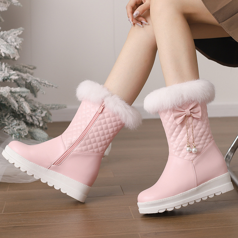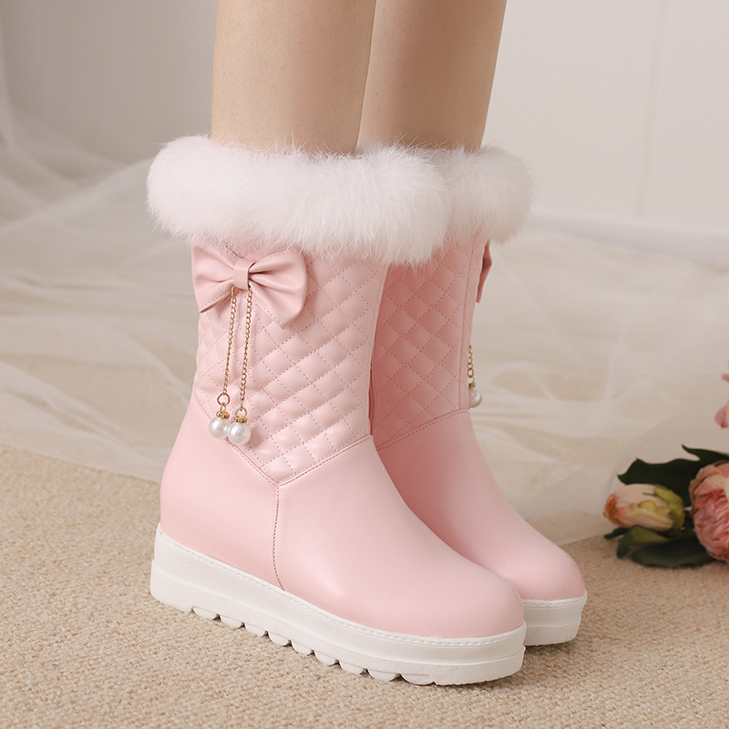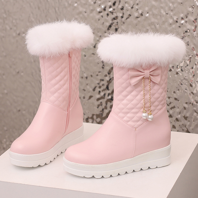 달콤한 나비 체인 모피 칼라 캔디 부츠 미드 배럴 웨지 캐주얼 부츠 마틴 부츠 32-43 해외 무역 부츠스토어 가기