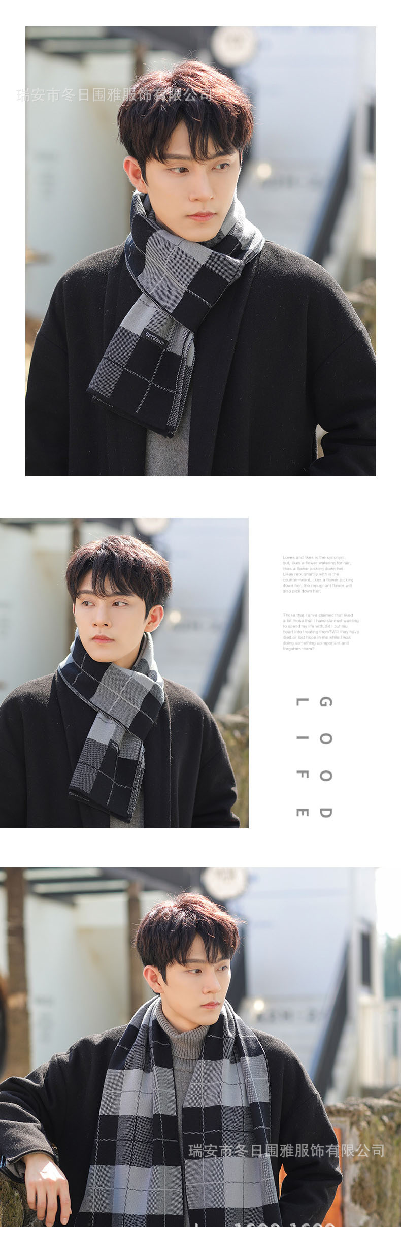 韩版秋冬新款男士围巾经典小方格子围脖 羊毛加厚保暖商务两面围
