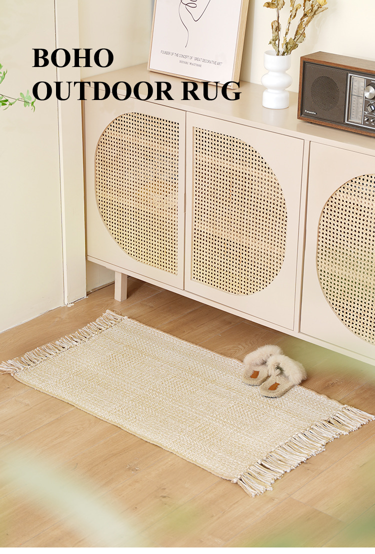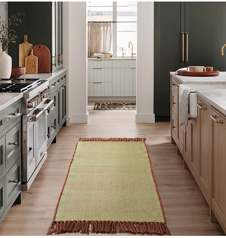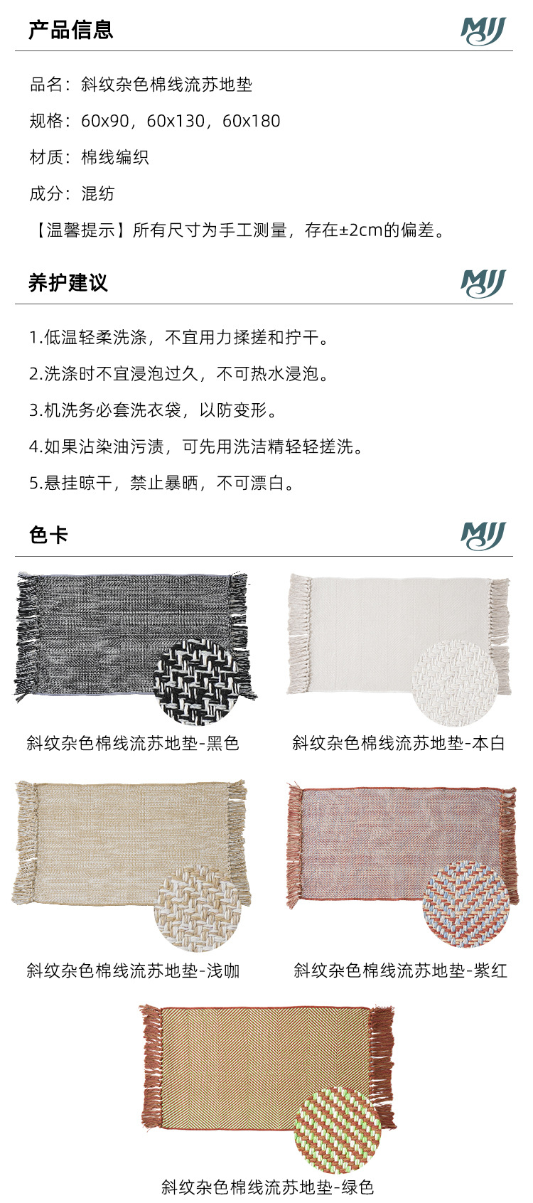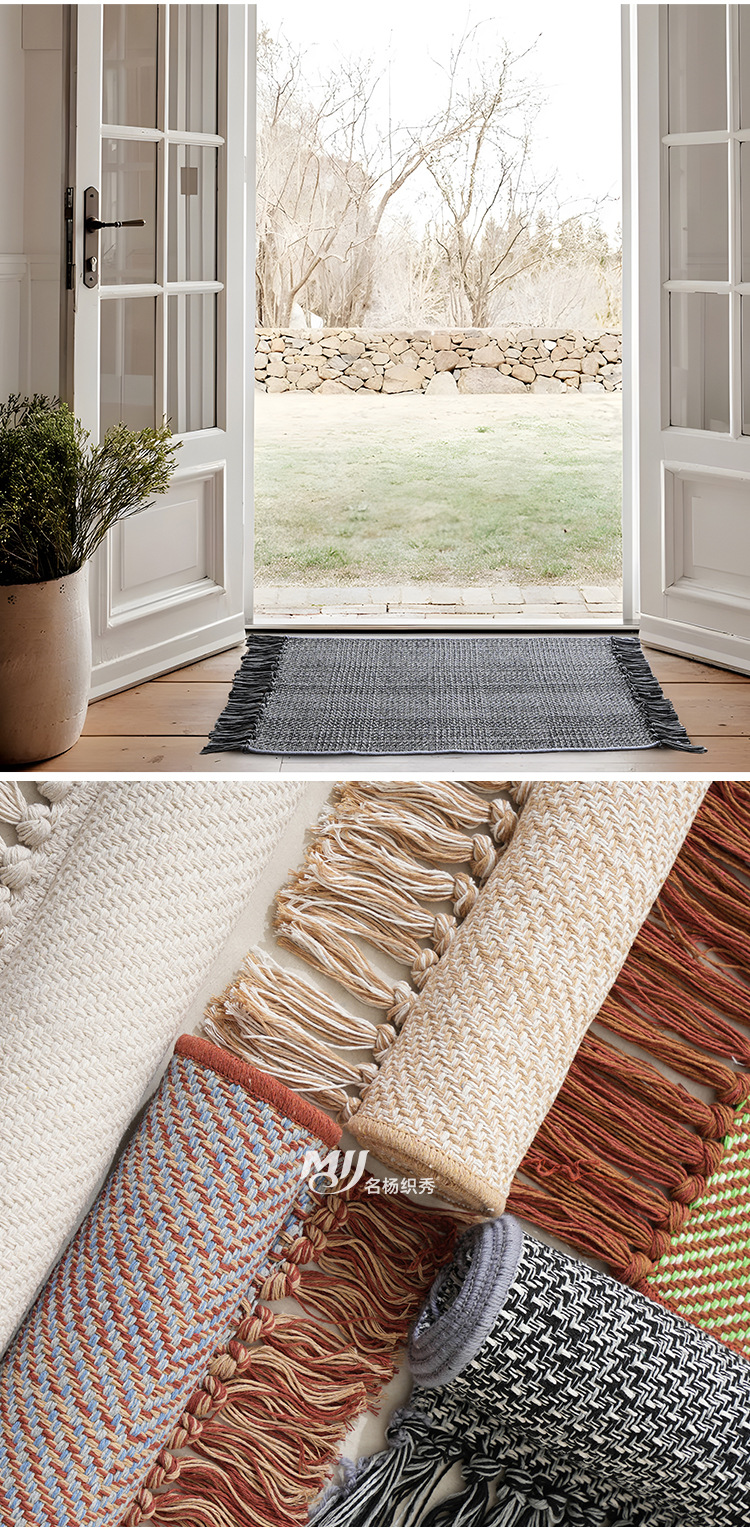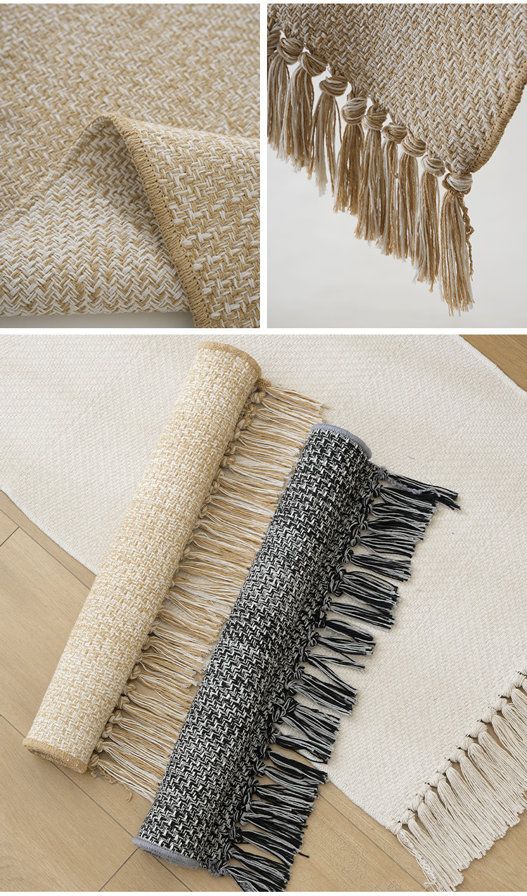 대외 무역 크로스보더 신상 트윌 혼색 프린지 바닥 매트 침실 침대 옆 담요 면사 직조 바닥 매트 현관 거실 바닥 매트스토어 가기