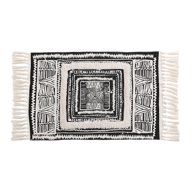 • 바커스 코튼 프린트 터프티드 태슬 바닥 매트 - 블랙