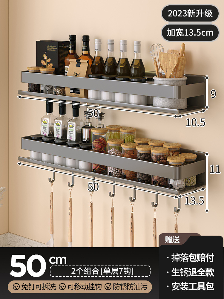 • [회색, 테이블 확장 및 농축] 7 개의 후크가있는 향신료 랙 50cm