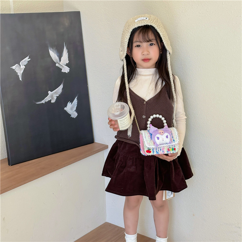어린이 가방 귀여운 작은 공주 크로스 바디 백 만화 작은 소녀 진주 핸드백 패션 체인 크로스 바디 백