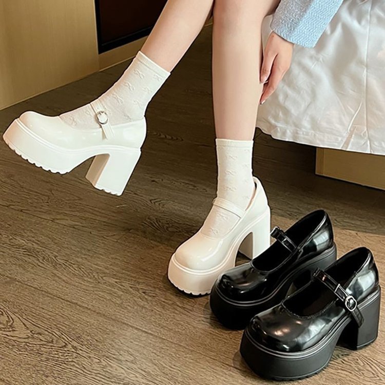 레트로 메리 제인 작은 가죽 신발 2023 봄과 가을 새로운 두꺼운 뒤꿈치 블랙 싱글 신발 공주 버클 하이힐 도매스토어 가기
