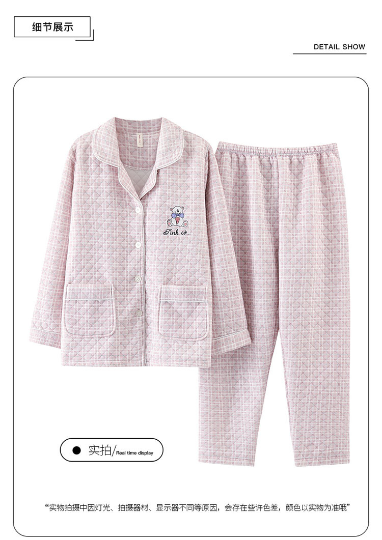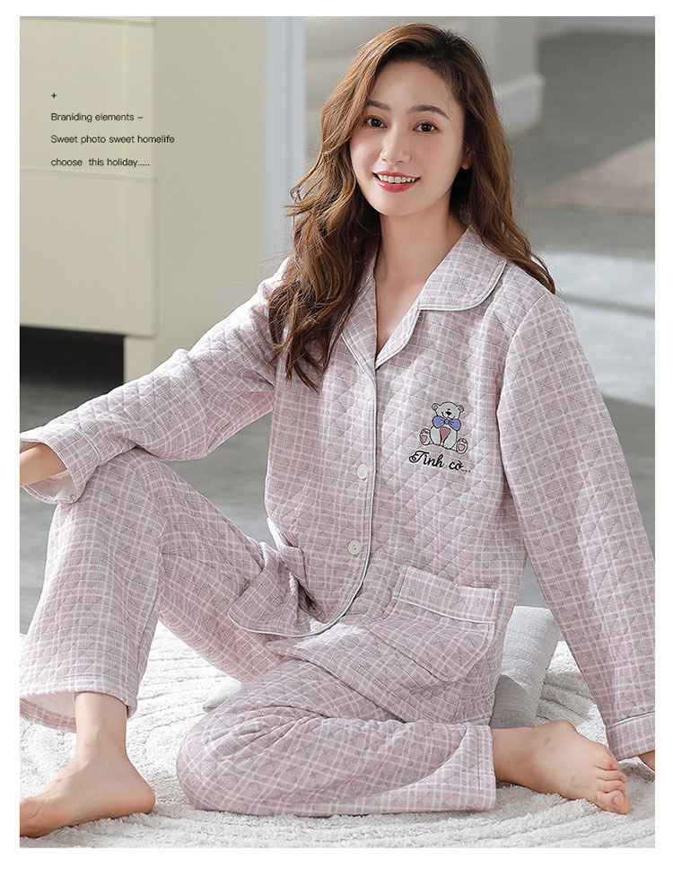 잠옷 여성 가을과 겨울 긴팔 면 샌드위치 중년 어머니 캐주얼 가디건 에어 코튼 얇은 면 퀼트 봄과 가을 가정복