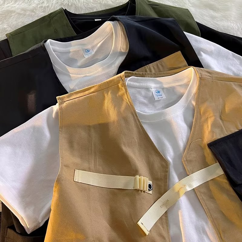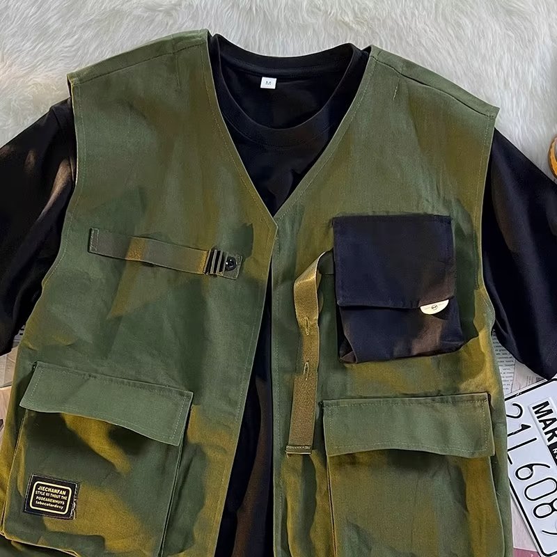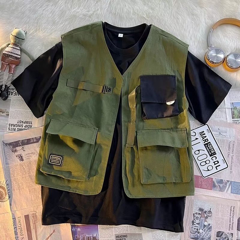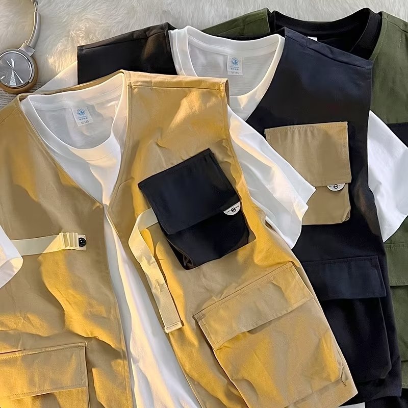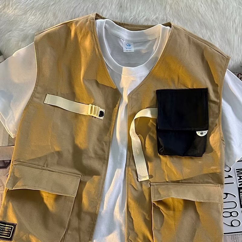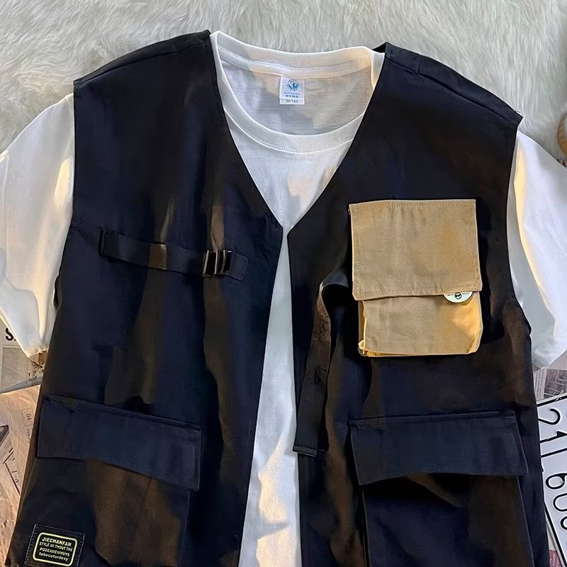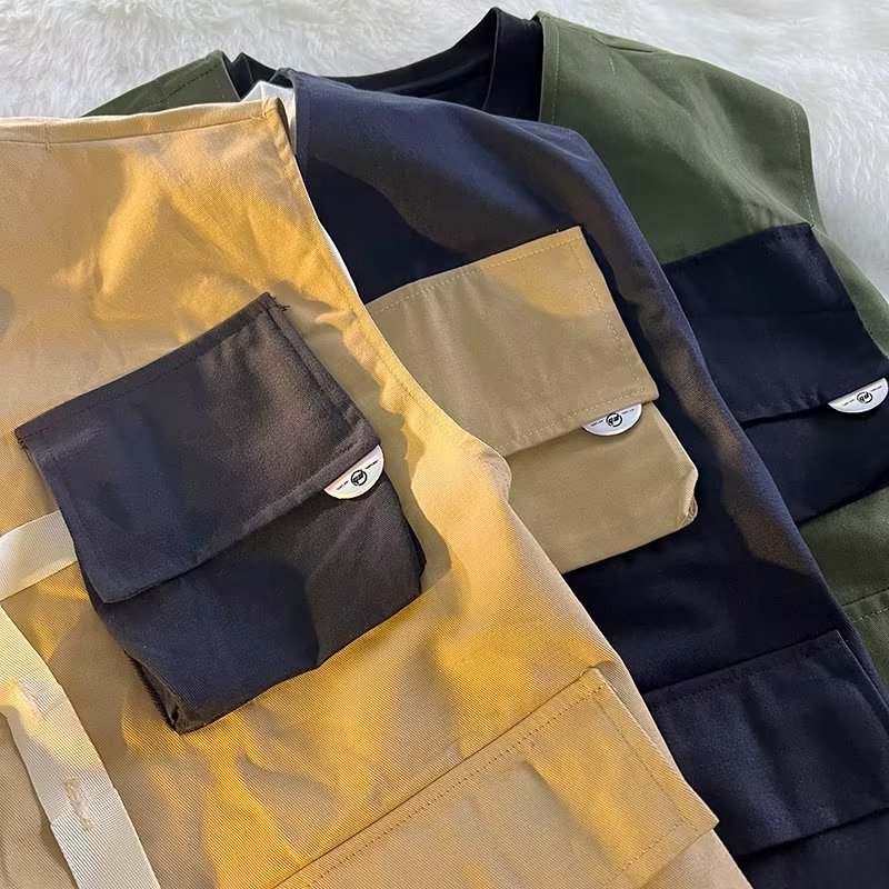 남녀 CUHK 아동 작업 조끼 전 경기 거리 사진 스트리트 댄스 시계 공연 조끼 상의 부모-자식 DIY 로고