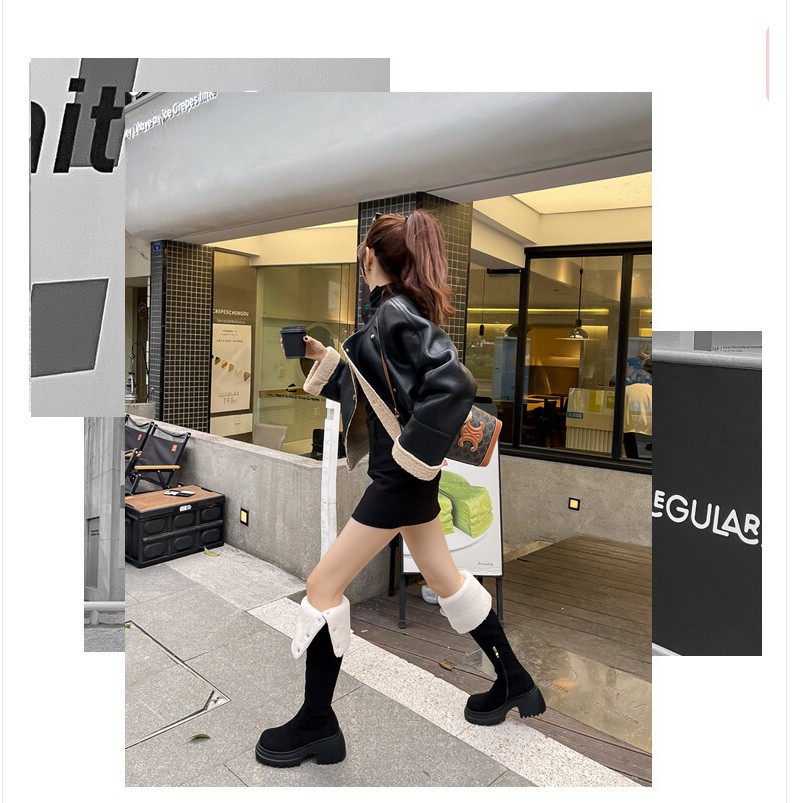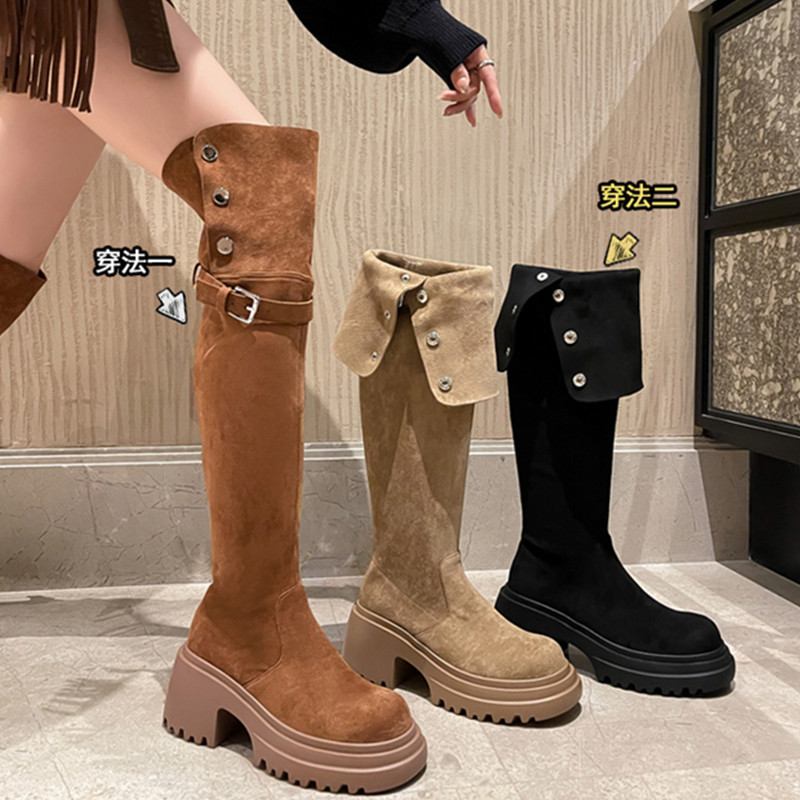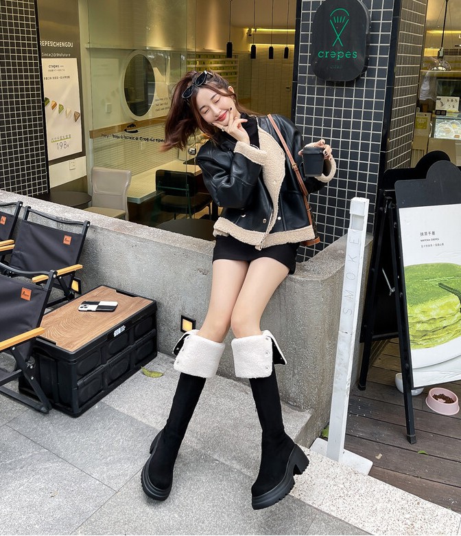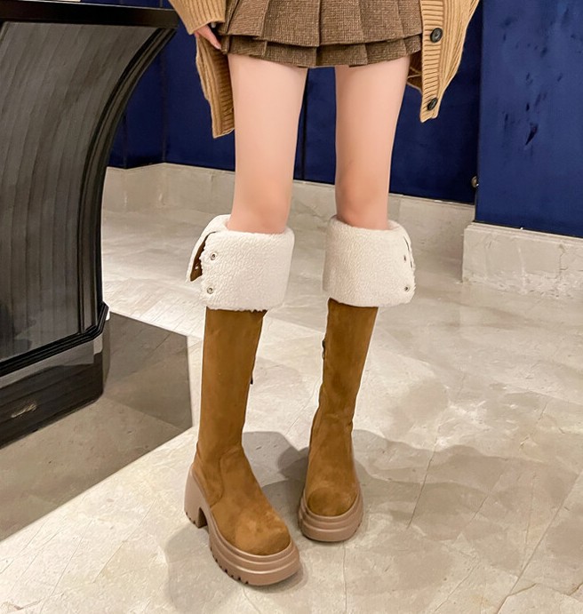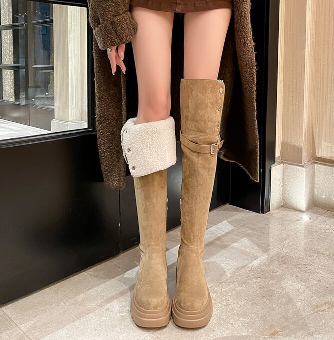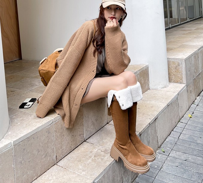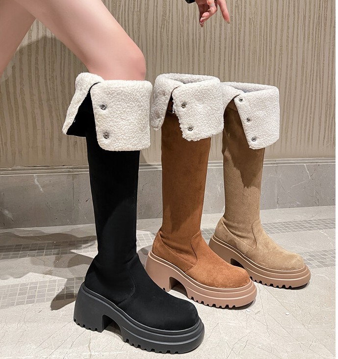 두꺼운 밑창 8cm 키높이 롱부츠 슬림 탄력 스노우 부츠 투웨이 접이식 하이탑 오버니 부츠 여성용스토어 가기