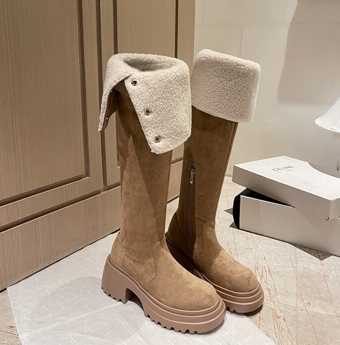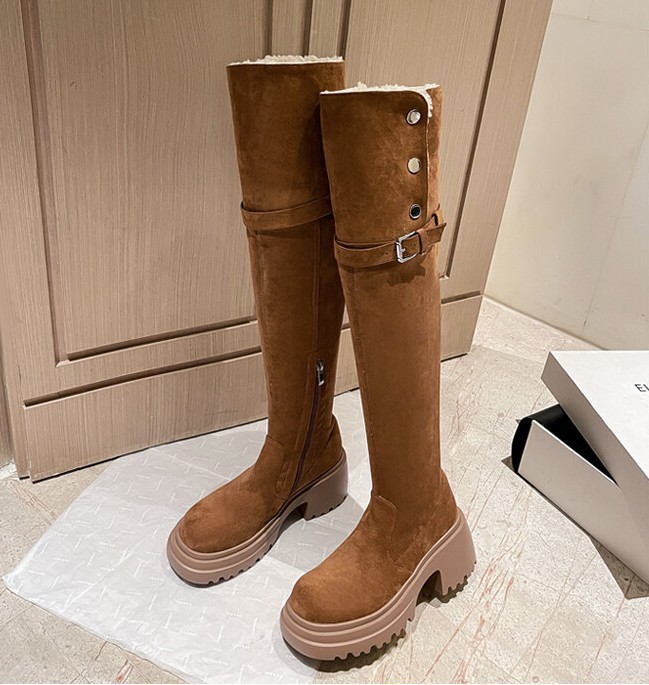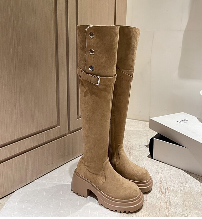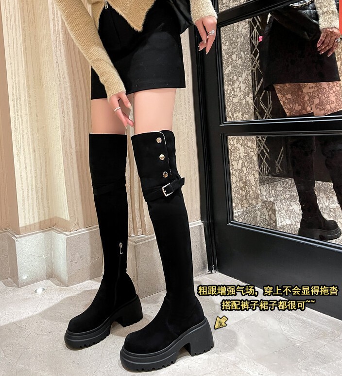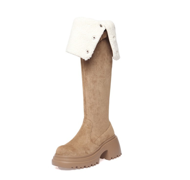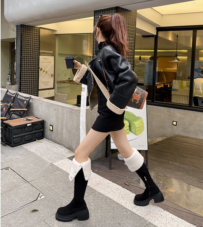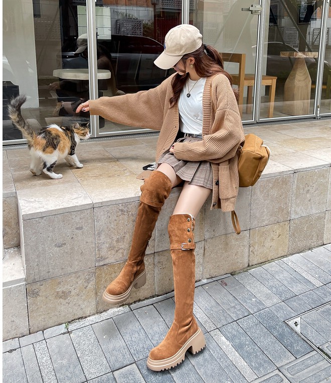 두꺼운 밑창 8cm 키높이 롱부츠 슬림 탄력 스노우 부츠 투웨이 접이식 하이탑 오버니 부츠 여성용스토어 가기