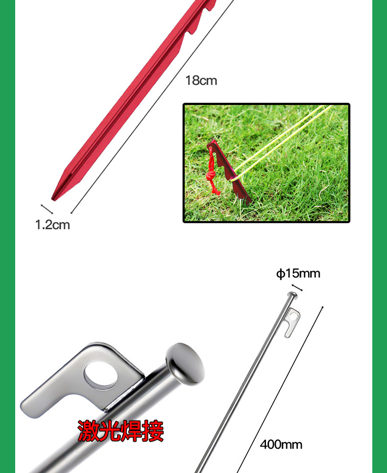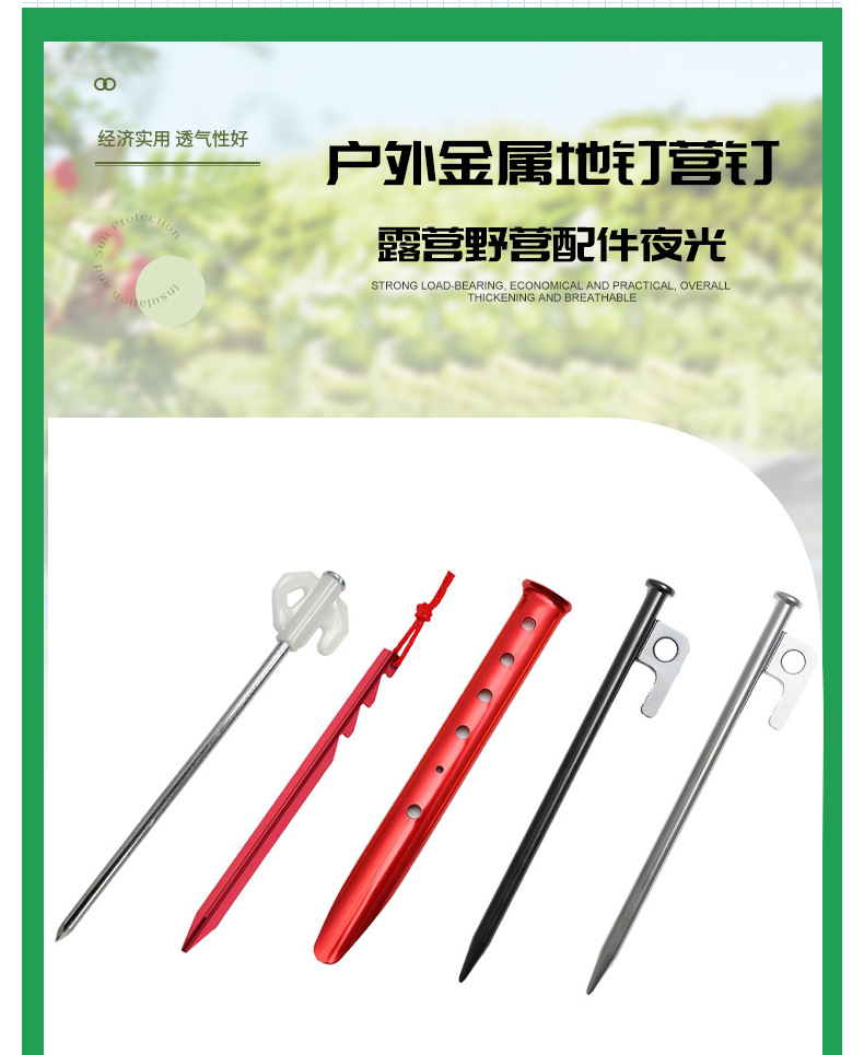 텐트 캐노피 야외 캠핑 캠핑 액세서리 빛나는 해변 잔디 잔디 시리즈 크기 금속 지상 손톱 캠프 손톱