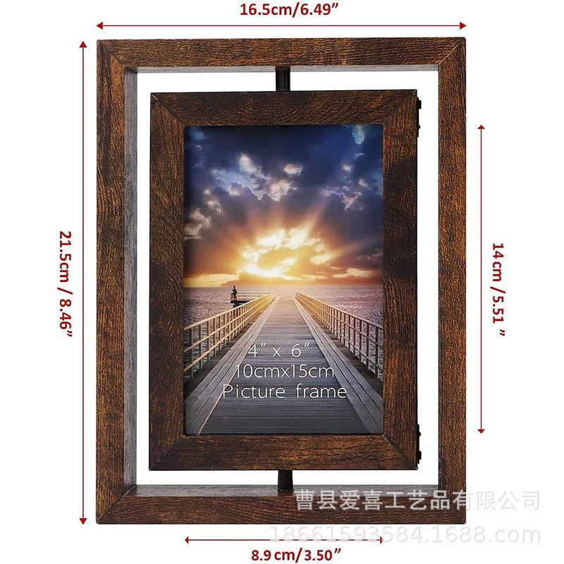 나무 사진 프레임 나무 양면 회전 사진 프레임 테이블 세로 데스크탑 장식품 복고풍 색상 나무 사진 프레임 크로스-테두리