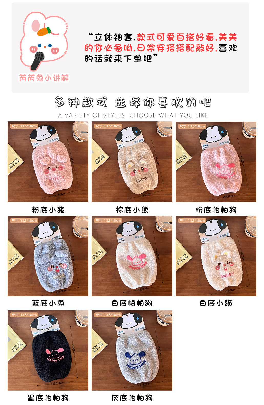 크리 에이 티브 만화 귀여운 개 슬리브 테디 벨벳 자수 패턴 방오 슬리브 가을과 겨울 어린이 방오 슬리브