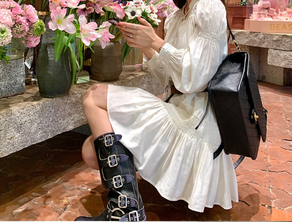 2023 가을과 겨울 프랑스 Pleated 고급 달콤한 요정 원피스 여성의 새로운 스키니 살을 다루는 연예인 원피스 트렌디스토어 가기