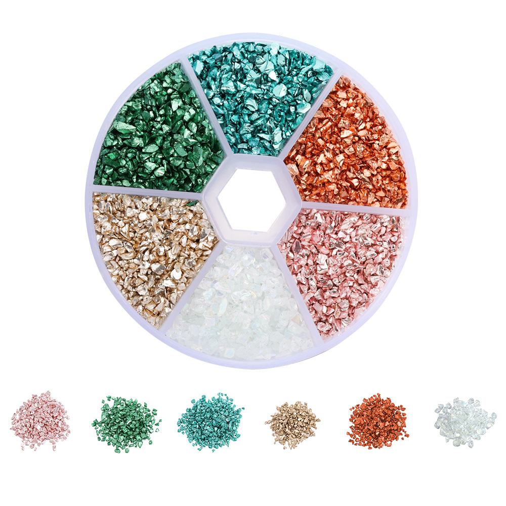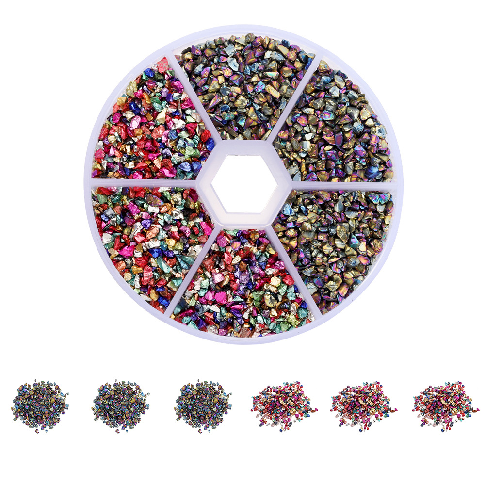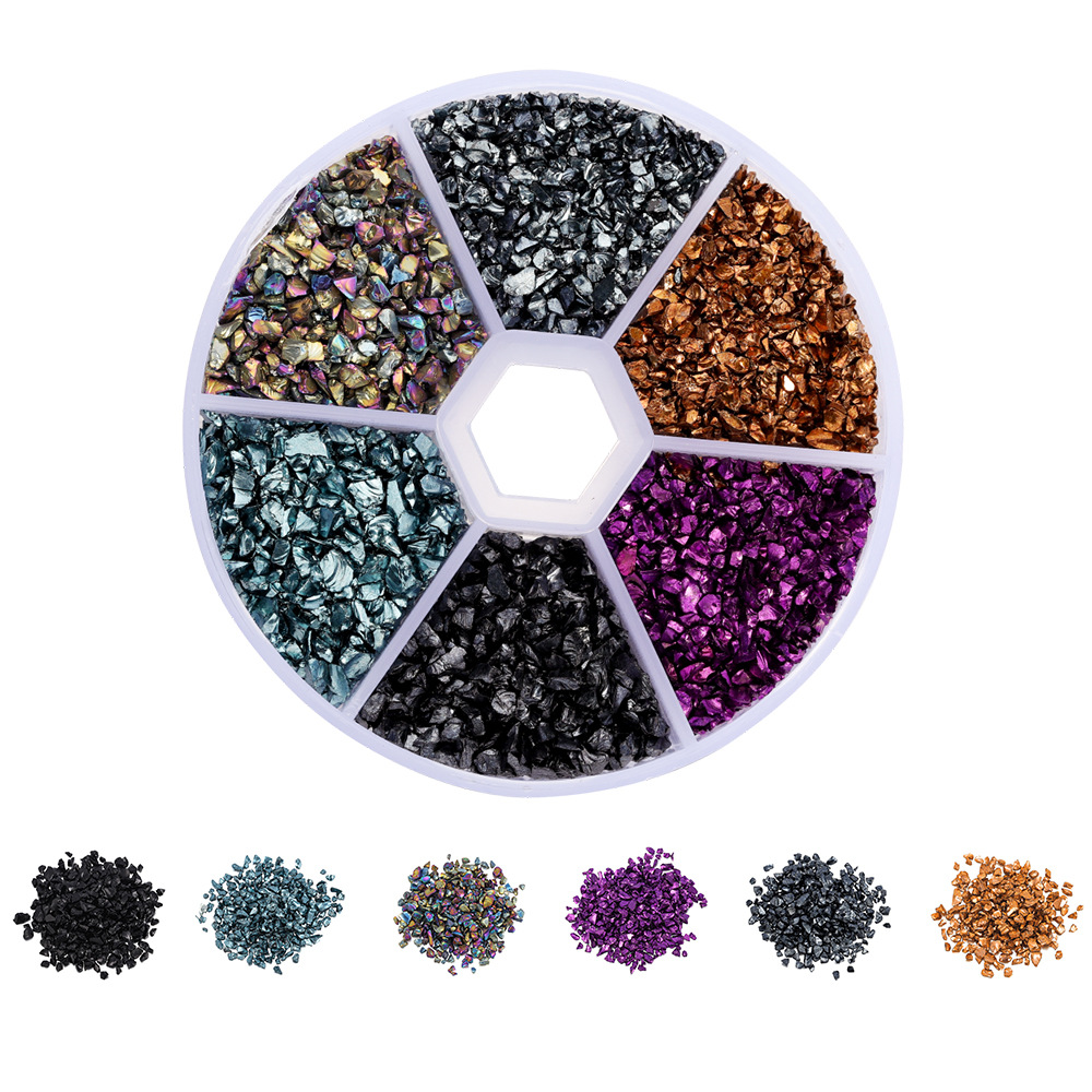 국경 간 핫 세일 6 그리드 자갈 박스 컬러 불규칙한 유리 자갈 DIY 네일 아트 소재 필러 도매