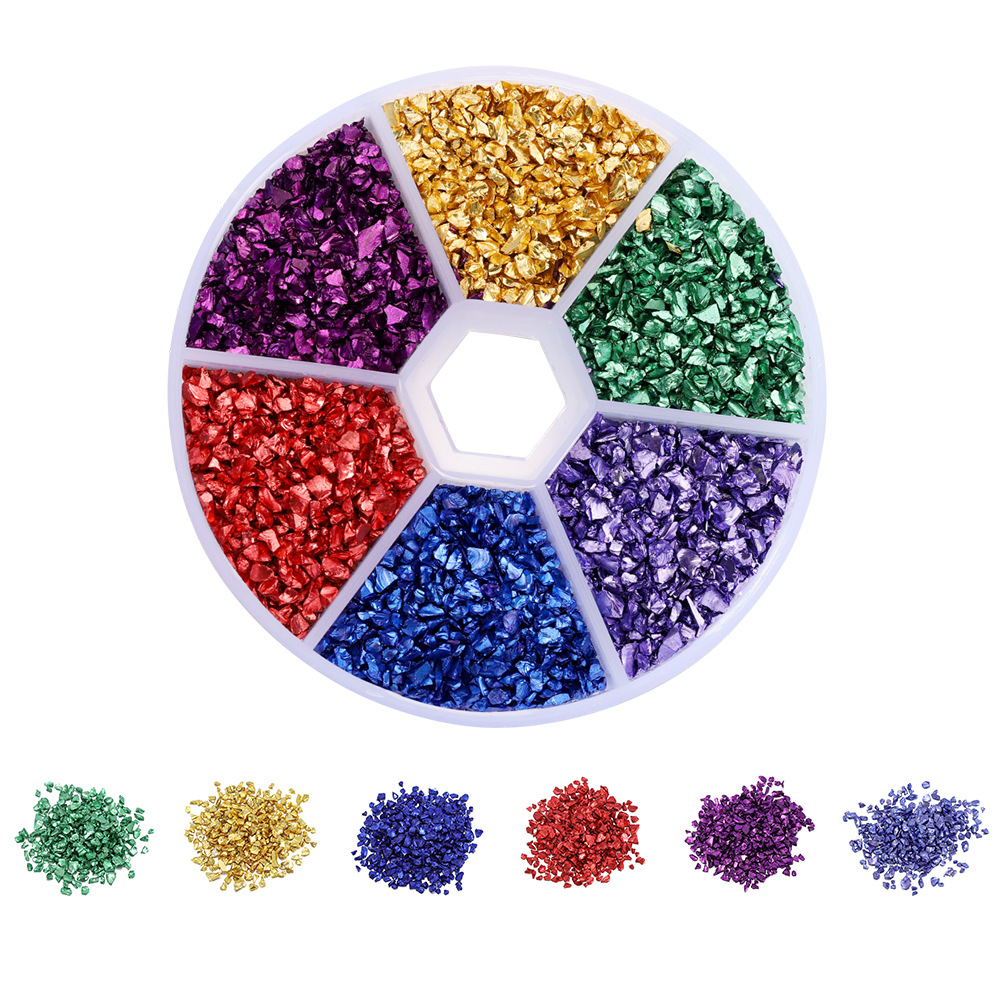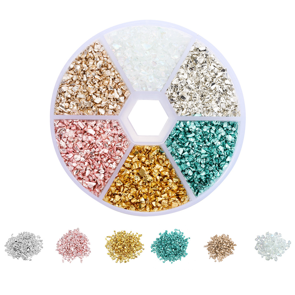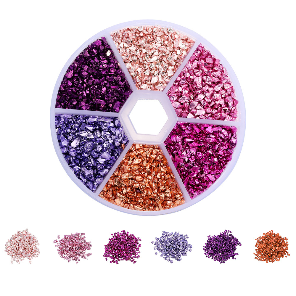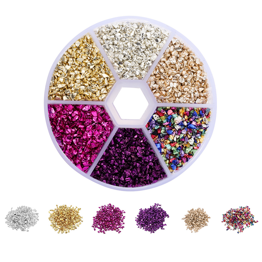국경 간 핫 세일 6 그리드 자갈 박스 컬러 불규칙한 유리 자갈 DIY 네일 아트 소재 필러 도매