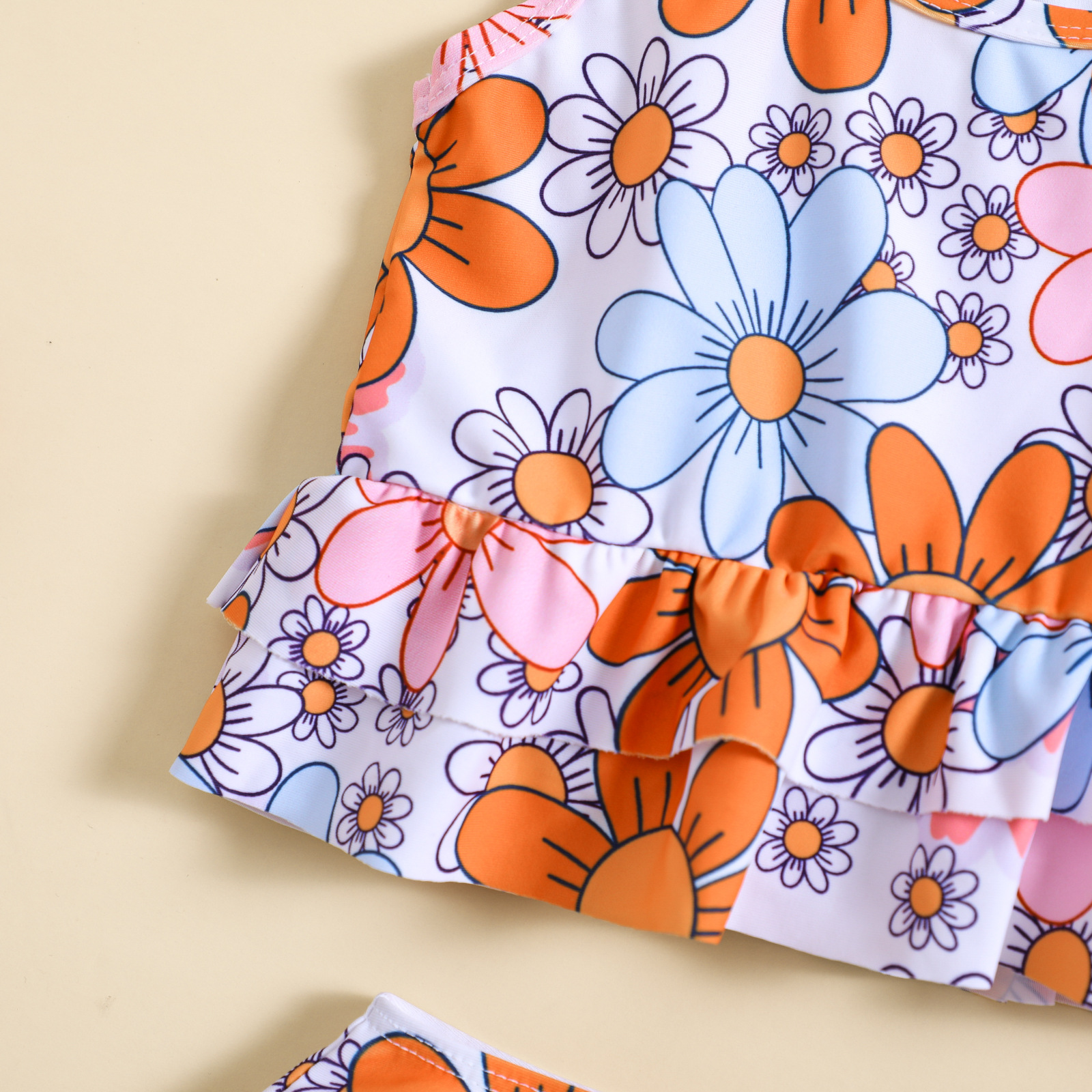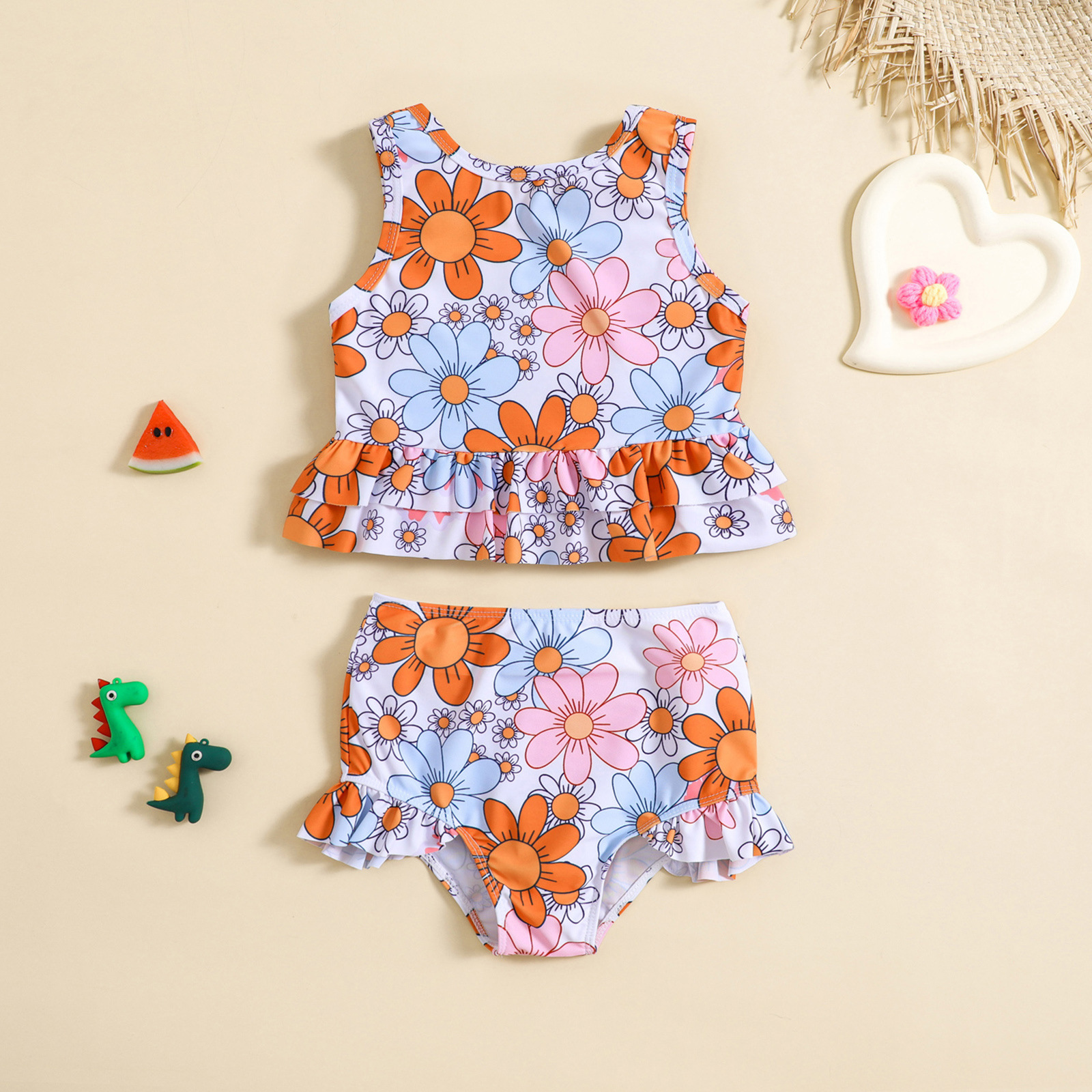 여자 귀여운 꽃 인쇄 분할 수영복 세트 크로스 보더