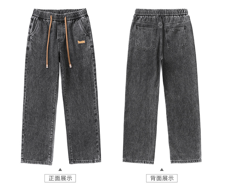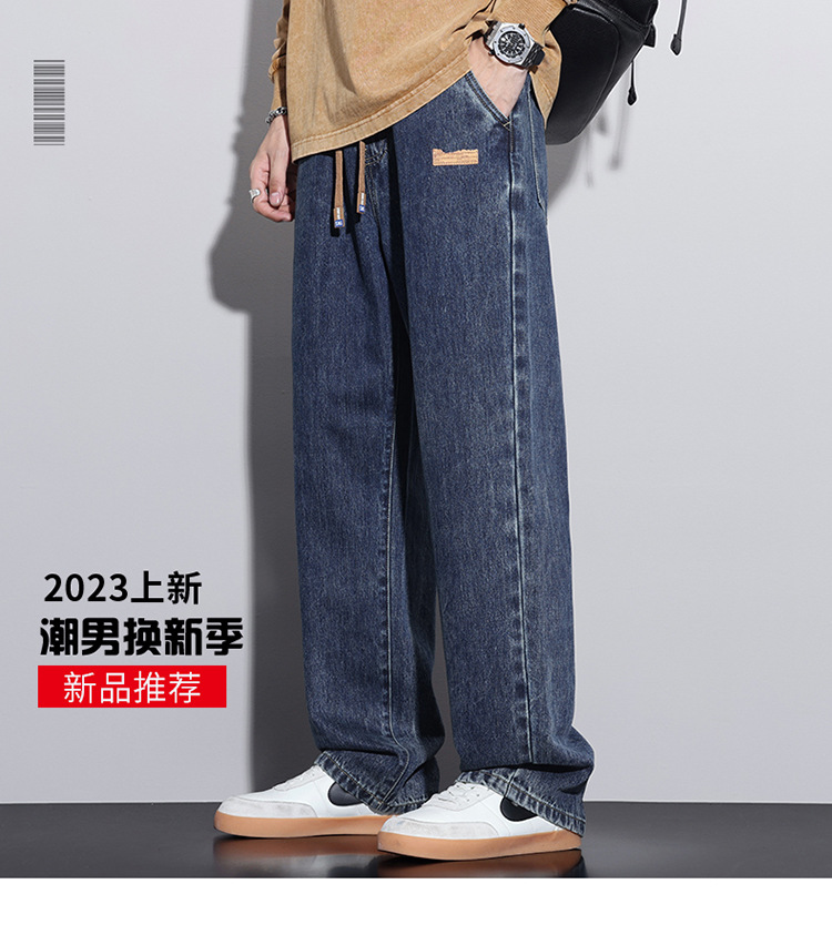 원피스 배달 미국 작업복 청바지 남성용 봄과 가을 새로운 탄성 허리 느슨한 스트레이트 와이드 레그 걸레 바지스토어 가기