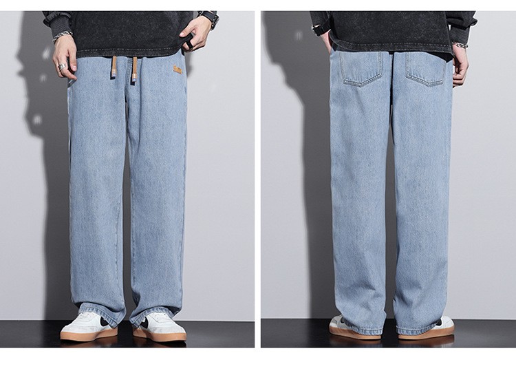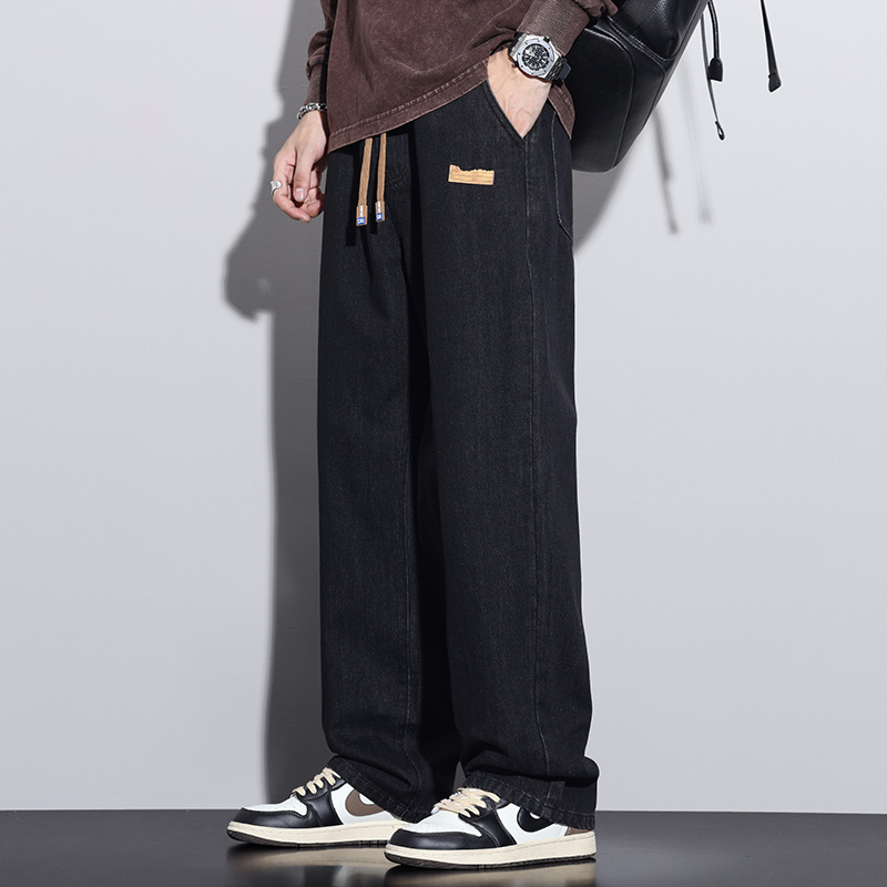 원피스 배달 미국 작업복 청바지 남성용 봄과 가을 새로운 탄성 허리 느슨한 스트레이트 와이드 레그 걸레 바지