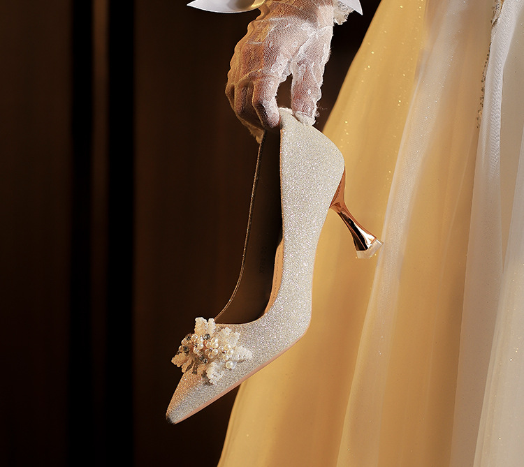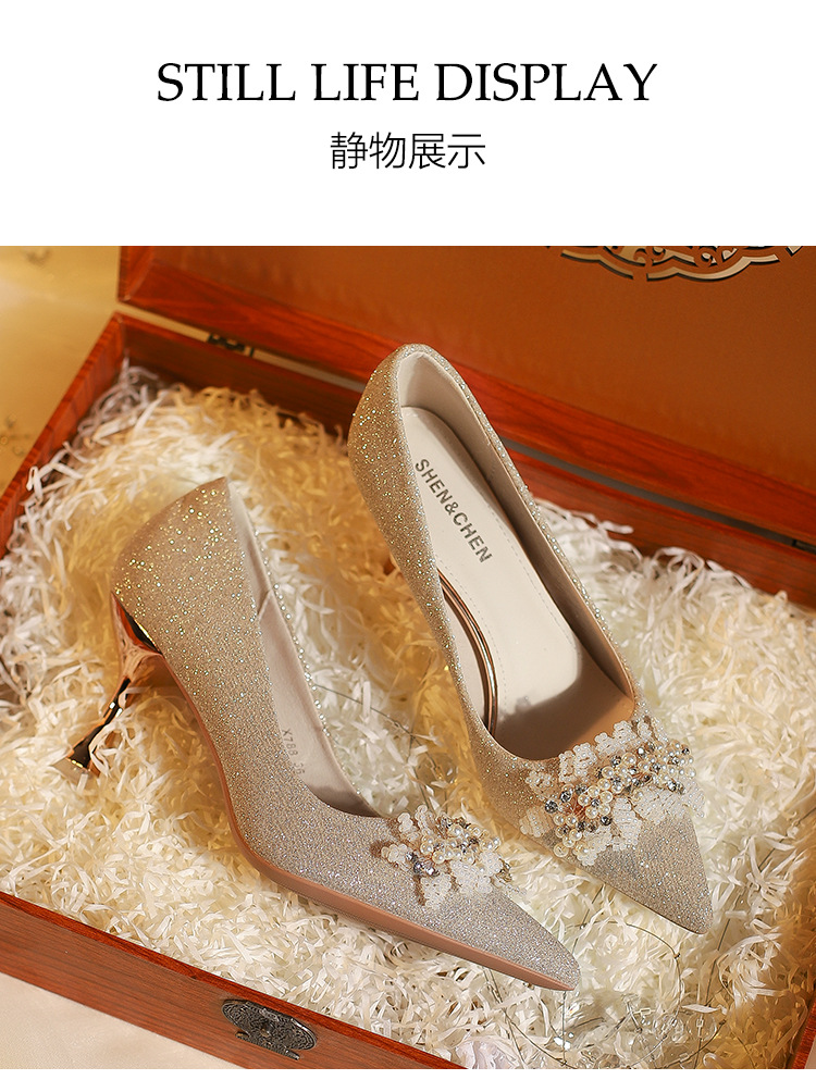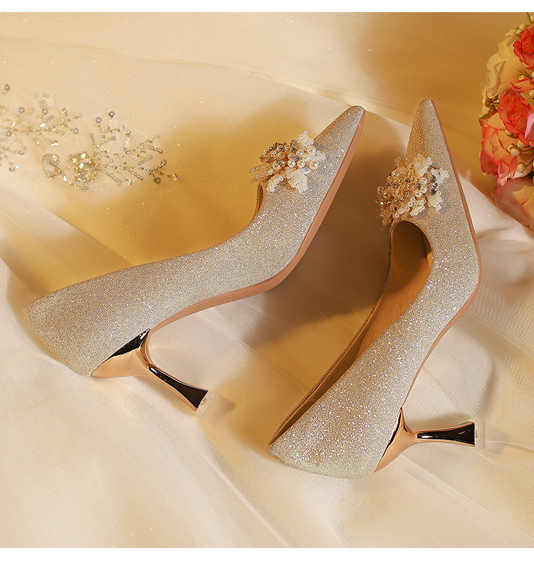 X788-18 모조 다이아몬드 진주 Xiuhe 하이힐 결혼식 고급 신부 들러리 피곤하지 않은 발 결혼식 신부 결혼식 신발 40-43
