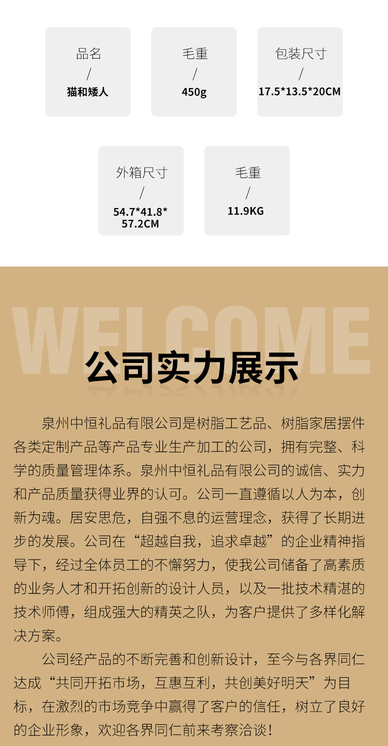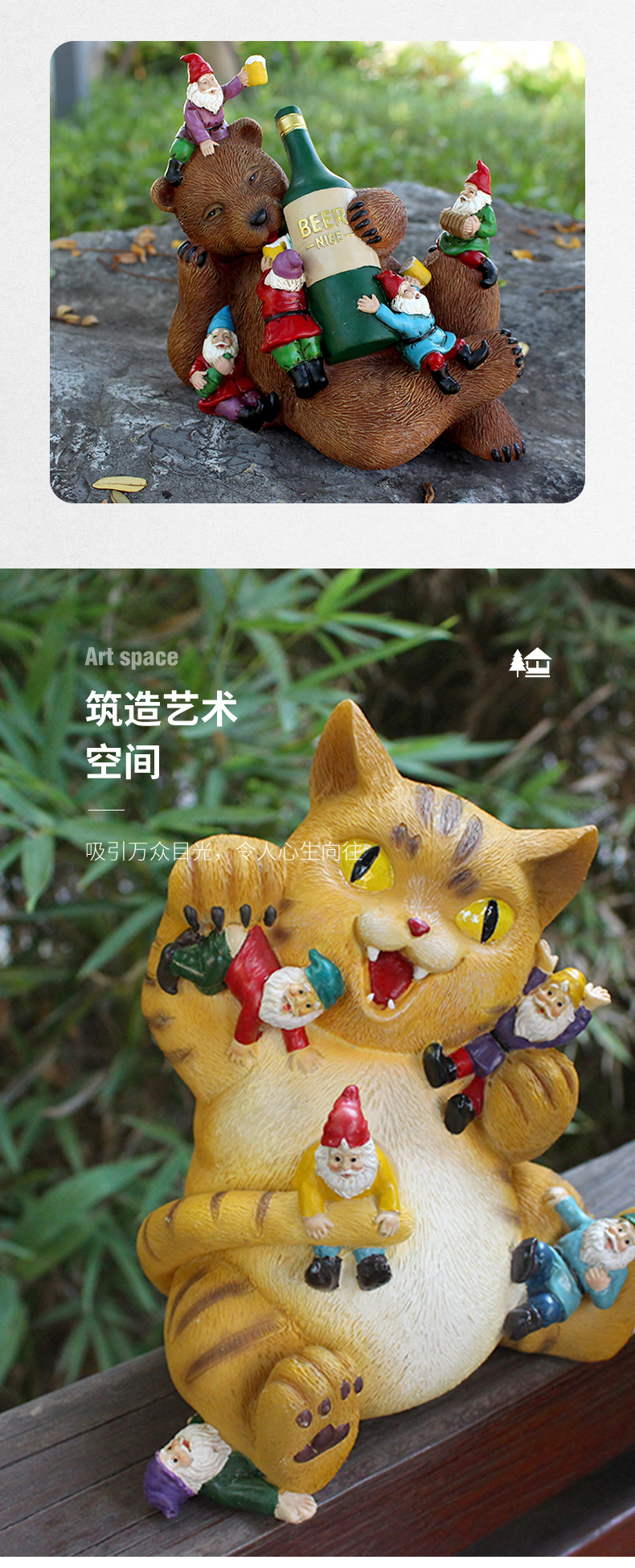 고양이와 난쟁이 동상 수지 공예 안뜰 장식 만화 수지 안뜰 동물 풍경 장식품
