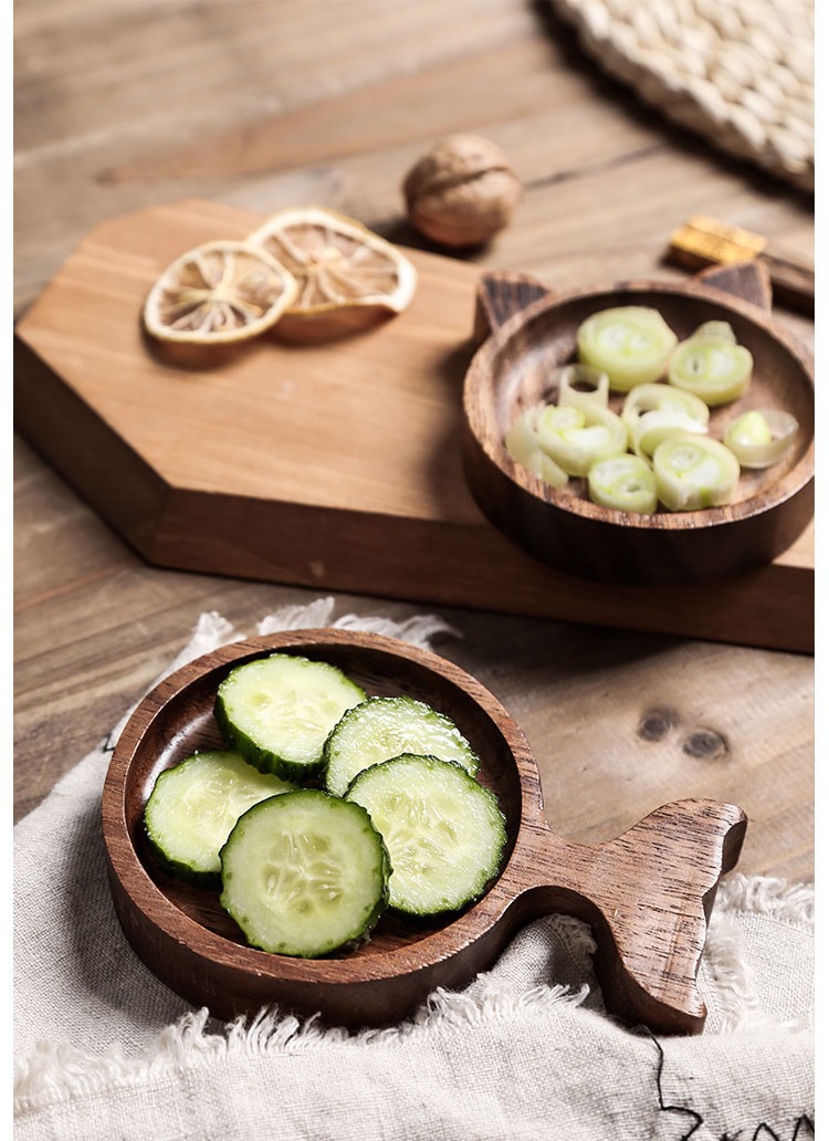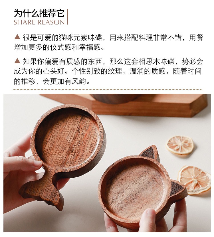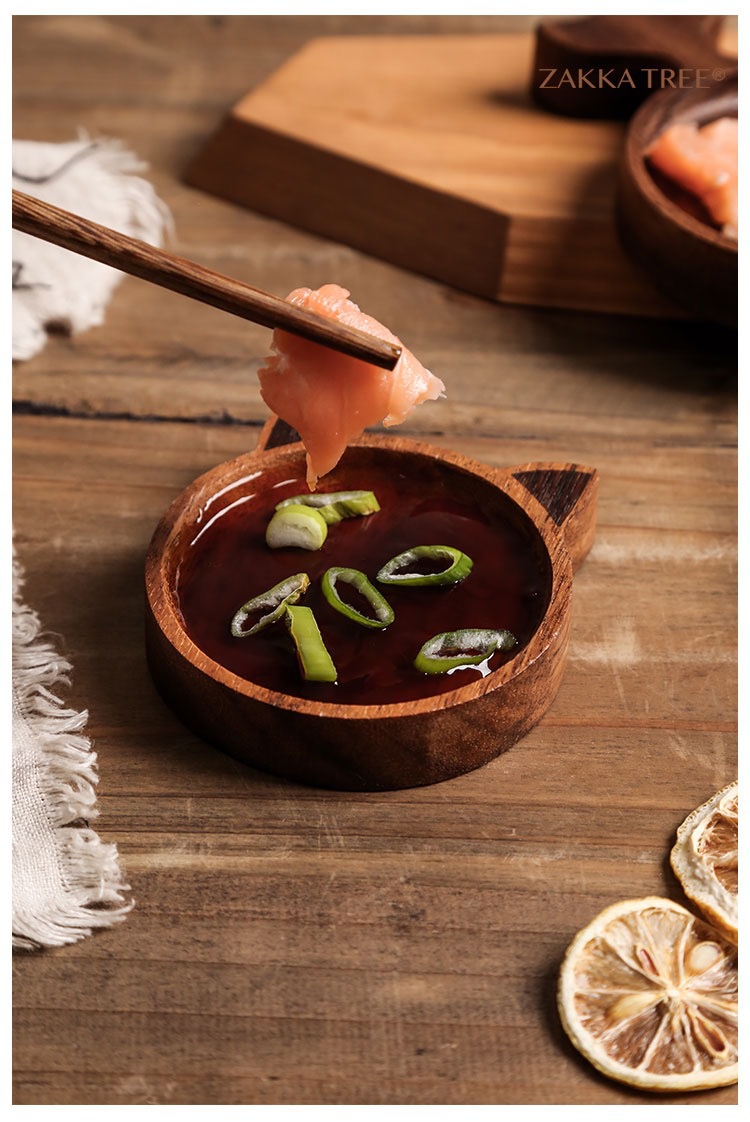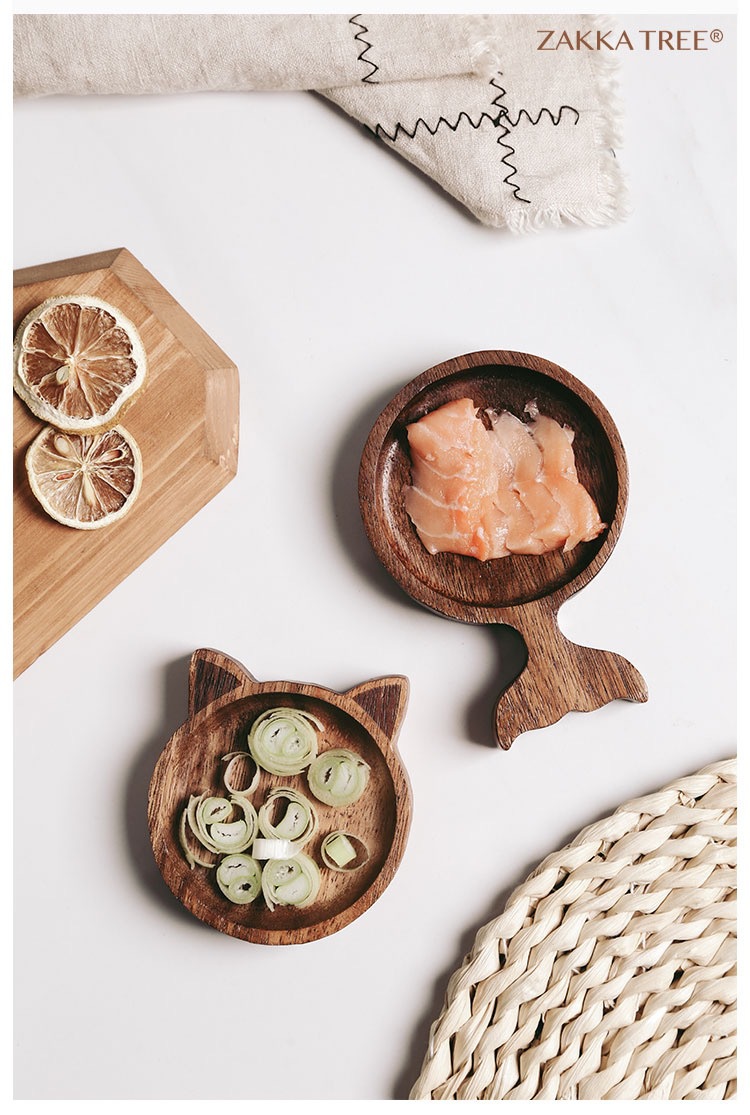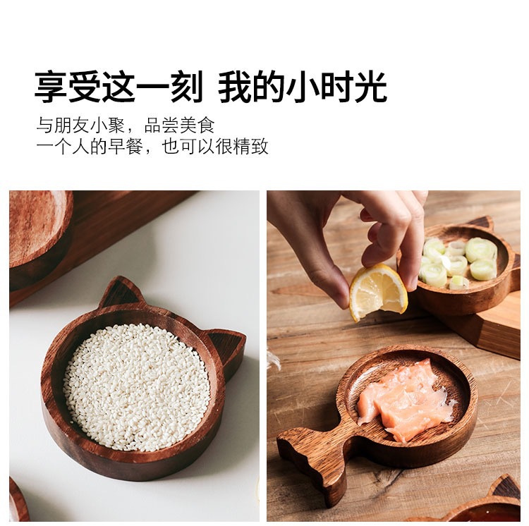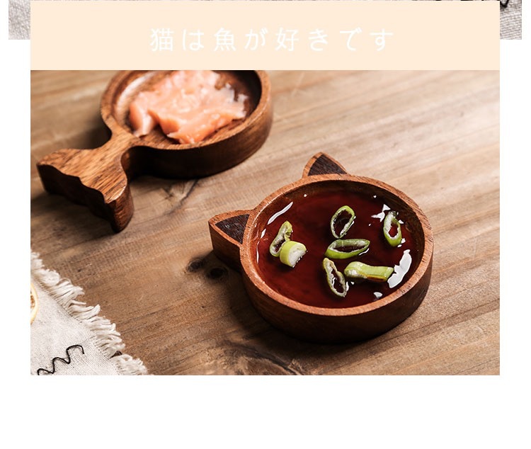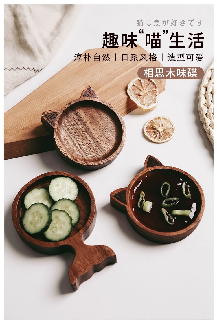 맞춤형 일본 아카시아 나무 조미료 요리 만화 창조적 인 고양이 스타일 귀여운 환경 친화적 인 소스 접시 냄비 가정스토어 가기