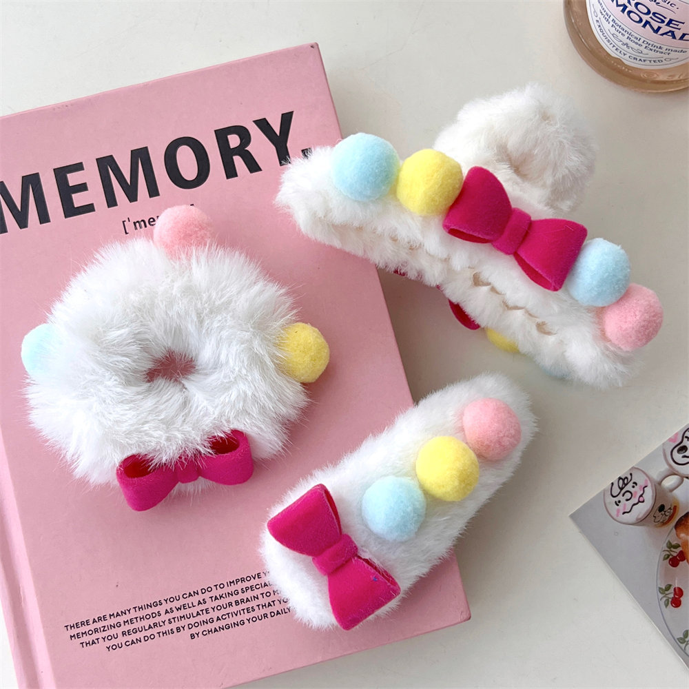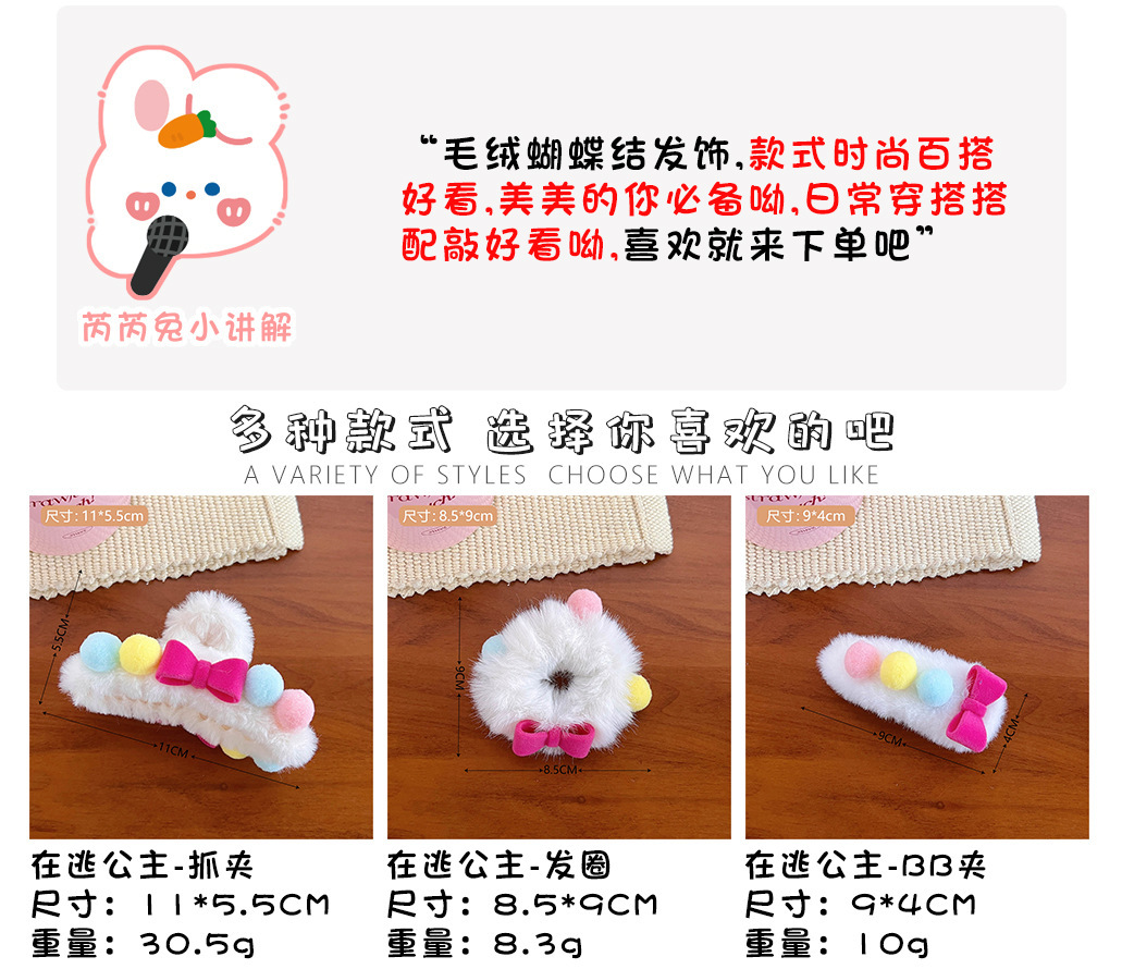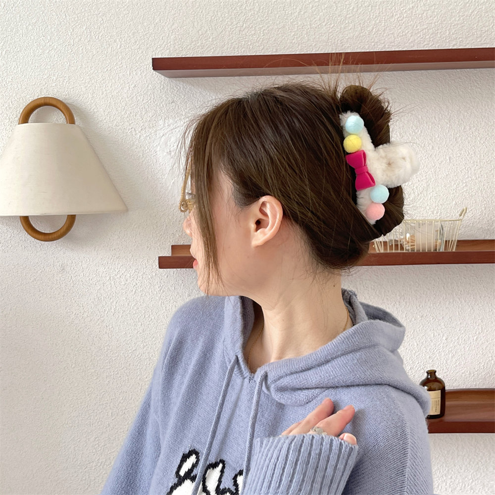 가을과 겨울 흰색 봉제 나비 헤어 액세서리 헤어 클립 컬러 앞머리 BB 클립 모든 일치 머리 상어 클립 머리 뒤쪽에스토어 가기