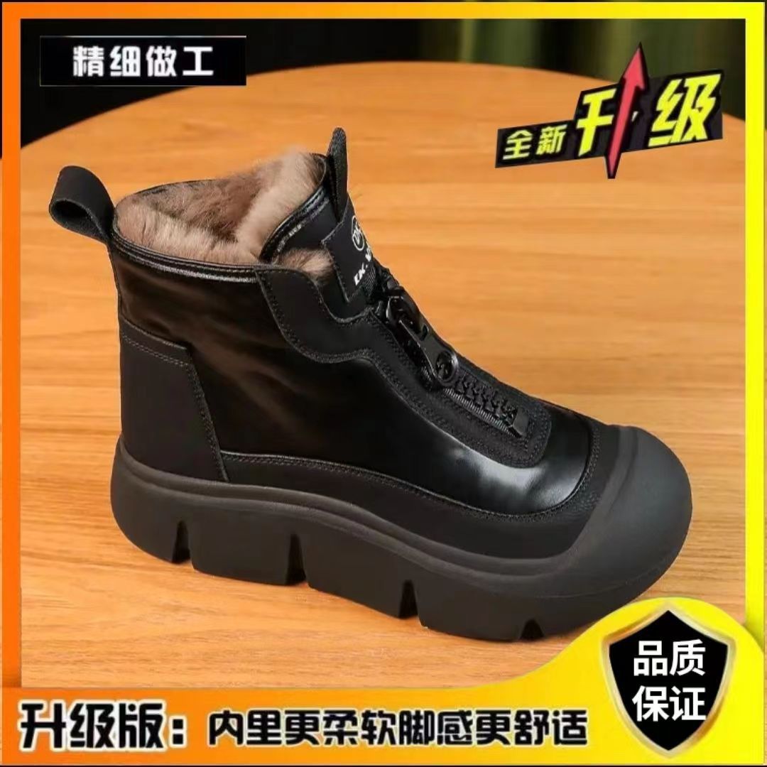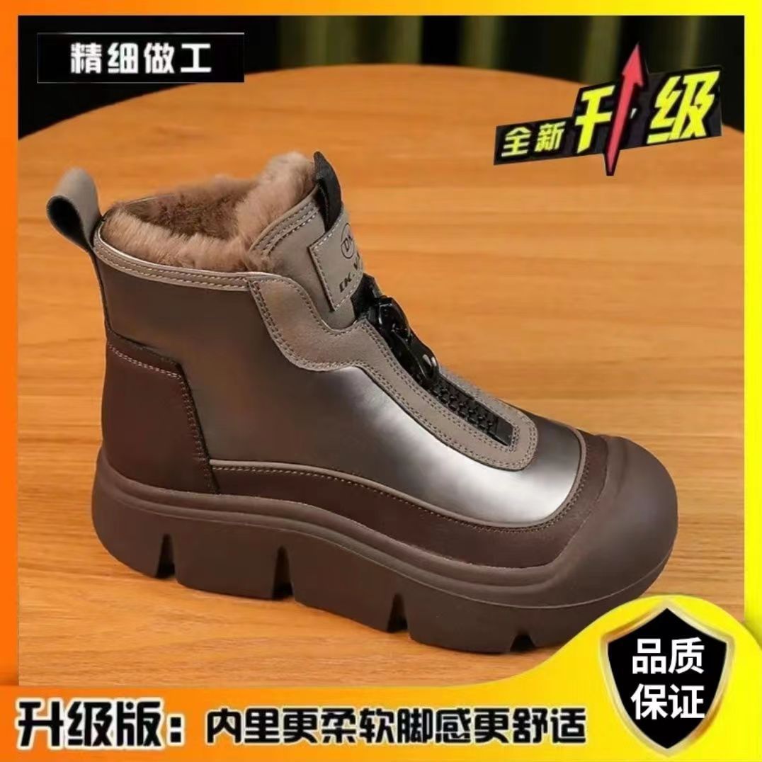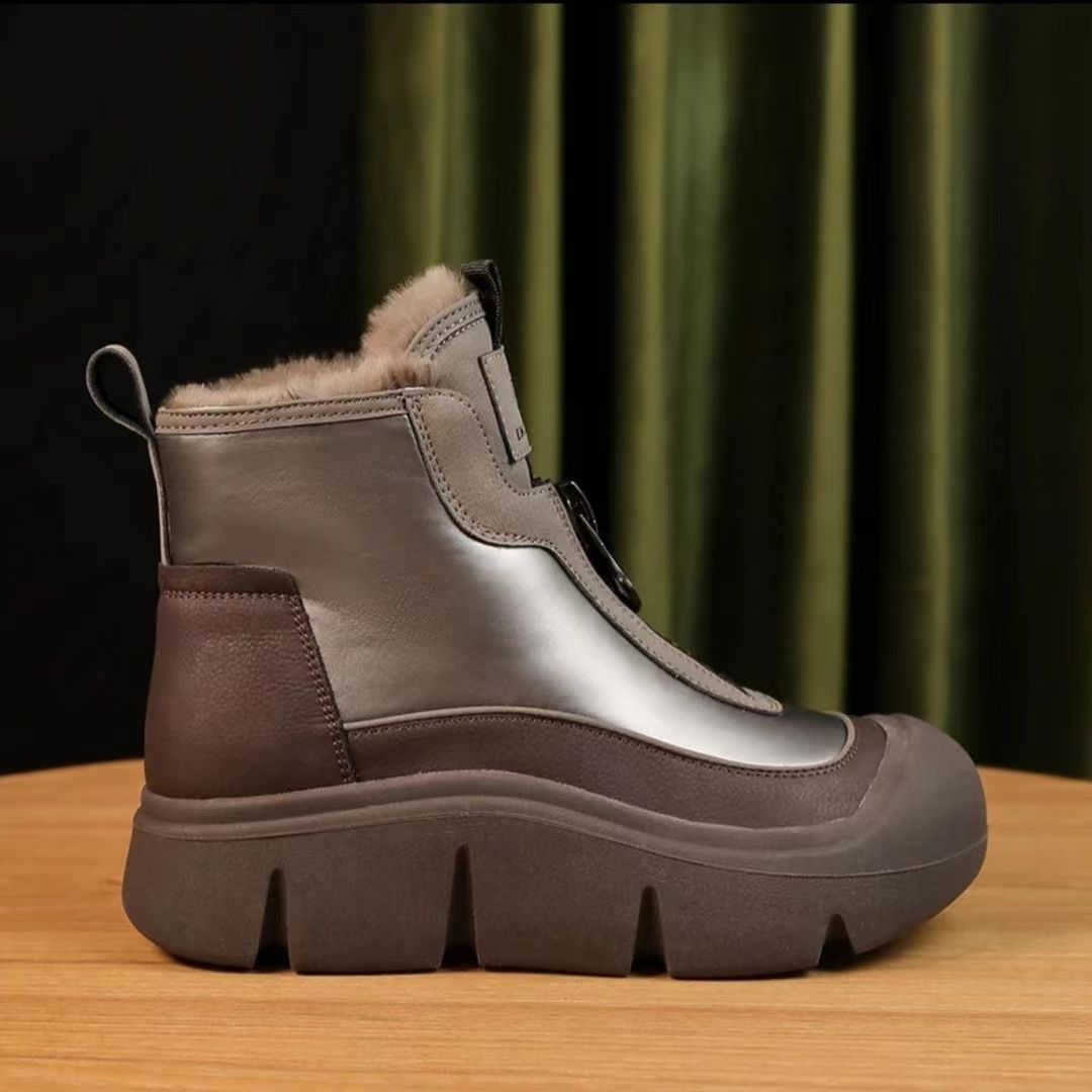 두꺼운 바닥 가죽 앞 지퍼 기모 마틴 부츠 여성의 2023 겨울 새로운 패션 믹스 앤 매치 편안한 따뜻한 발목 부츠스토어 가기