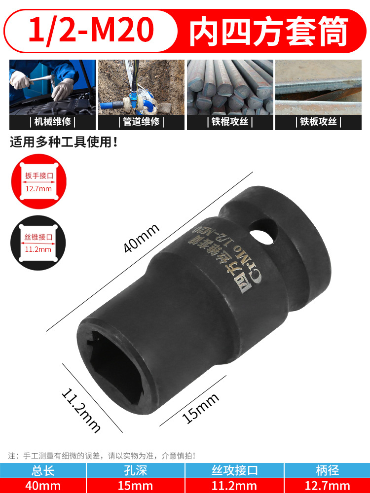 사각 탭 슬리브 1/2 인치 와이어 리턴 슬리브 내부 사각형 구멍 렌치 공압 렌치 2 단 사각형 와이어 태핑 인서트스토어 가기