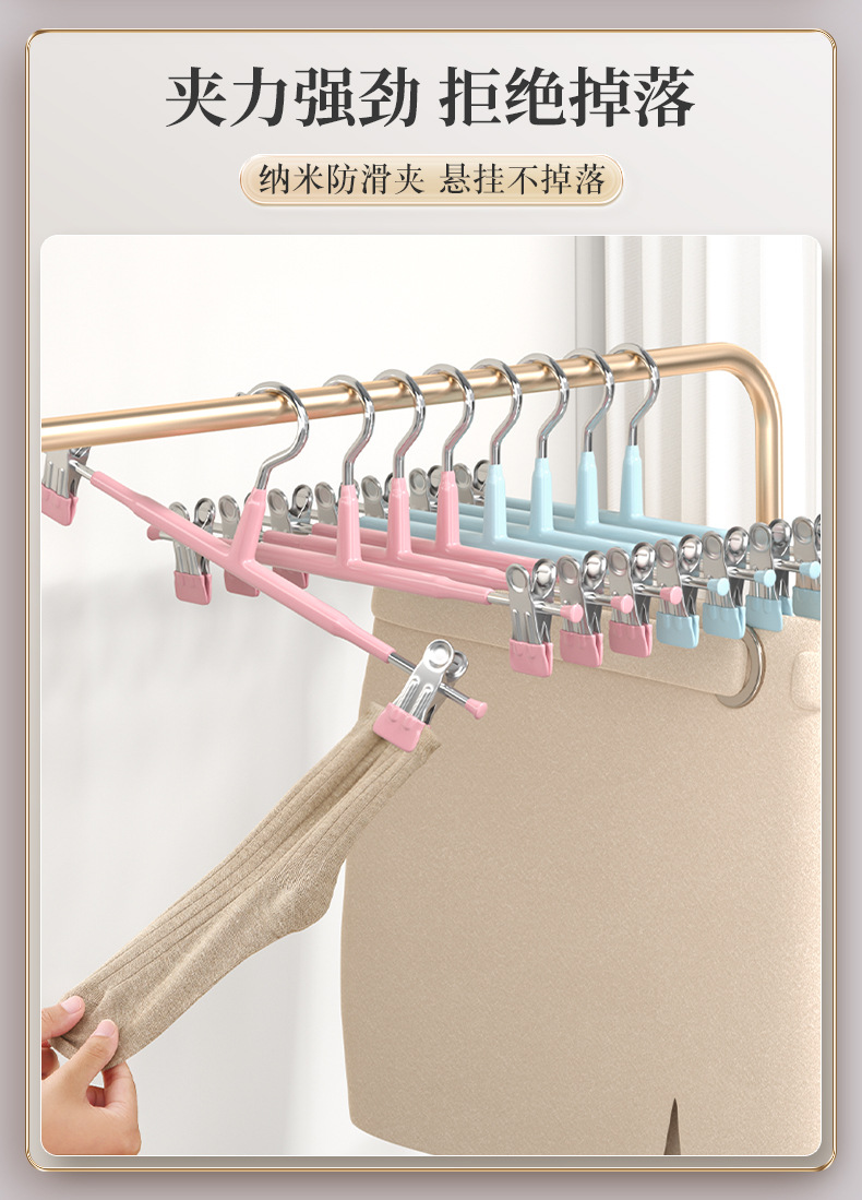 가정용 옷장 원활한 강력한 텔레스코픽 바지 보관 걸이 클립 JK 스커트 클립 발코니 스테인레스 스틸 바지 클립 랙스토어 가기