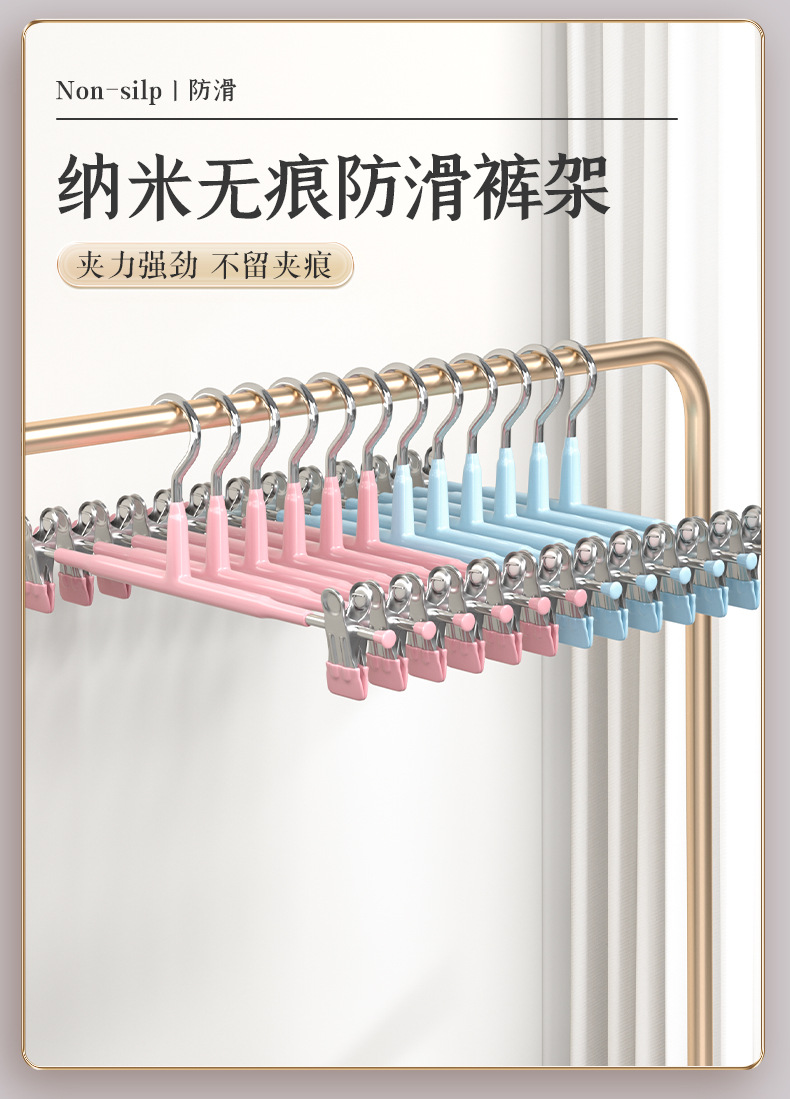 가정용 옷장 원활한 강력한 텔레스코픽 바지 보관 걸이 클립 JK 스커트 클립 발코니 스테인레스 스틸 바지 클립 랙