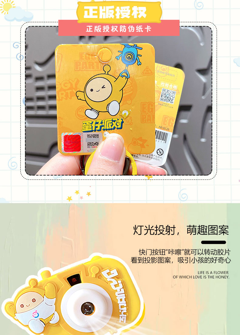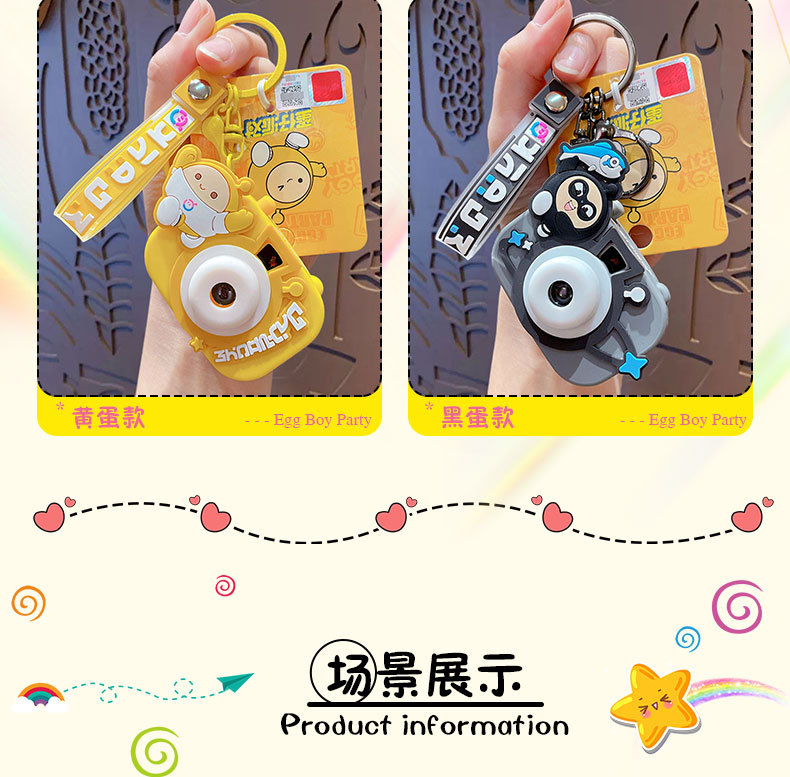 정품 만화 계란 파티 프로젝션 카메라 키 체인 펜던트 귀여운 커플 가방 교수형 장식품 작은 선물 도매스토어 가기