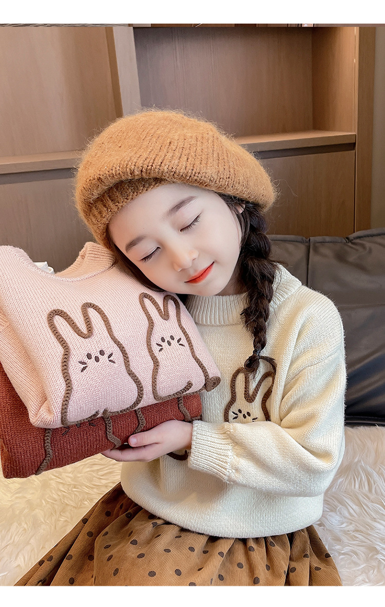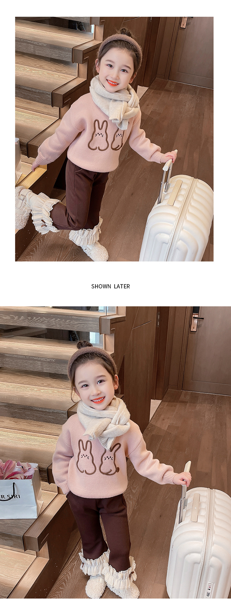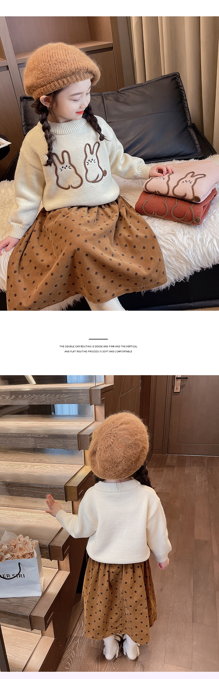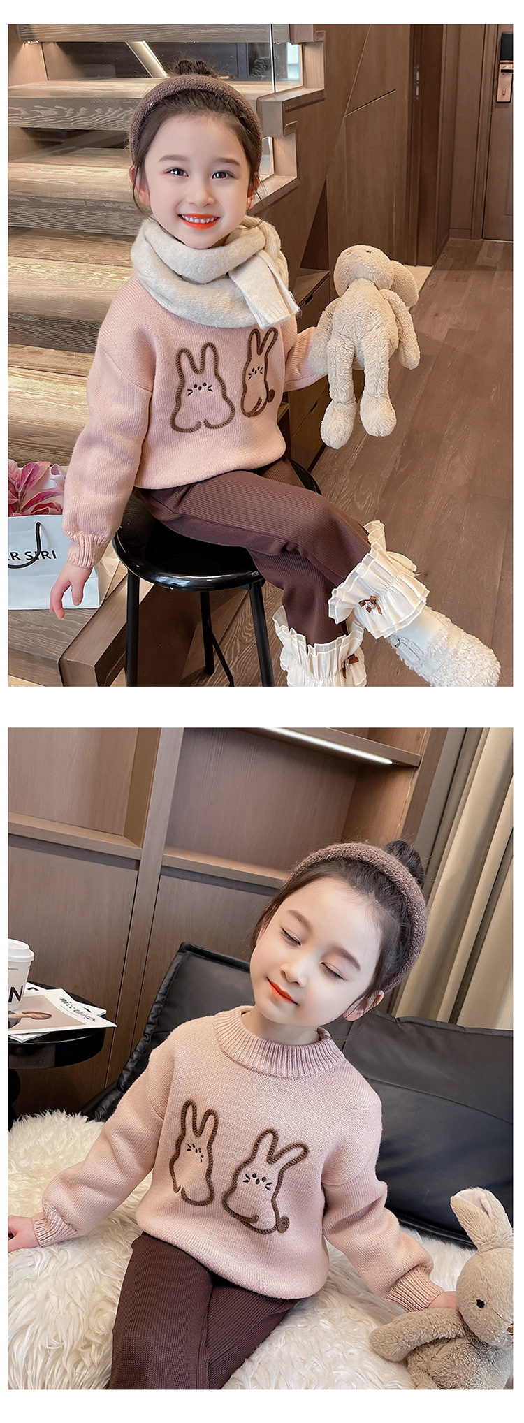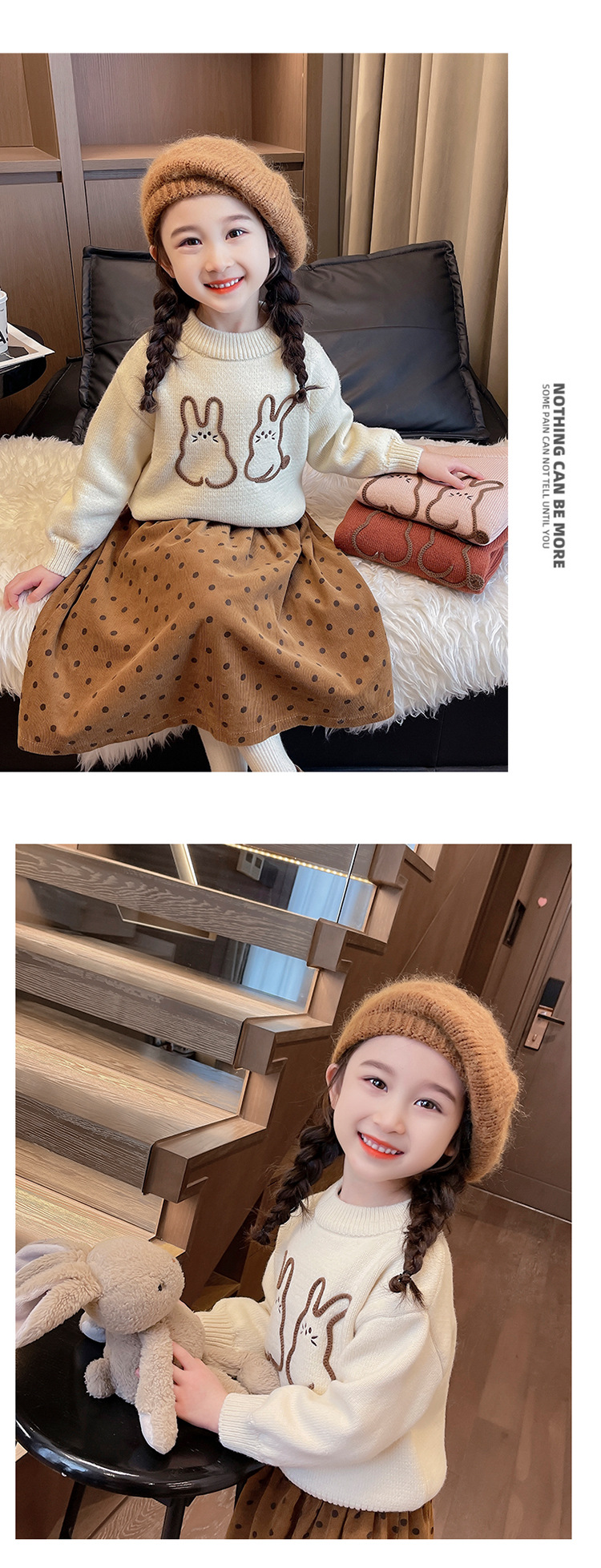 여아 스웨터 가을과 겨울 2023 새로운 니트 풀오버 어린이 아기 웨스턴 스타일 원피스 벨벳베이스 두꺼운 겨울 옷