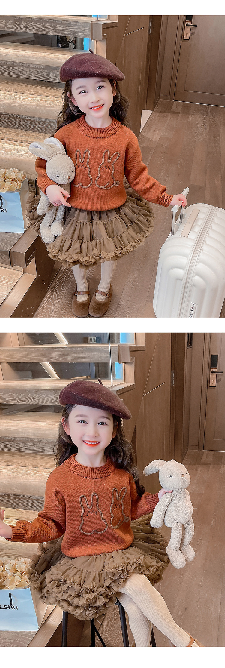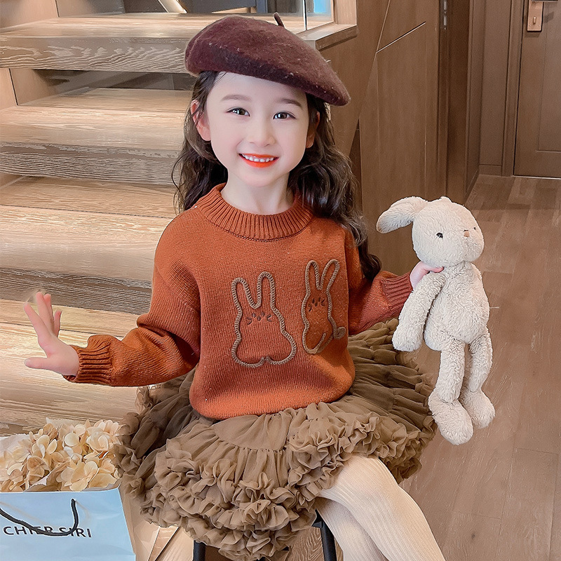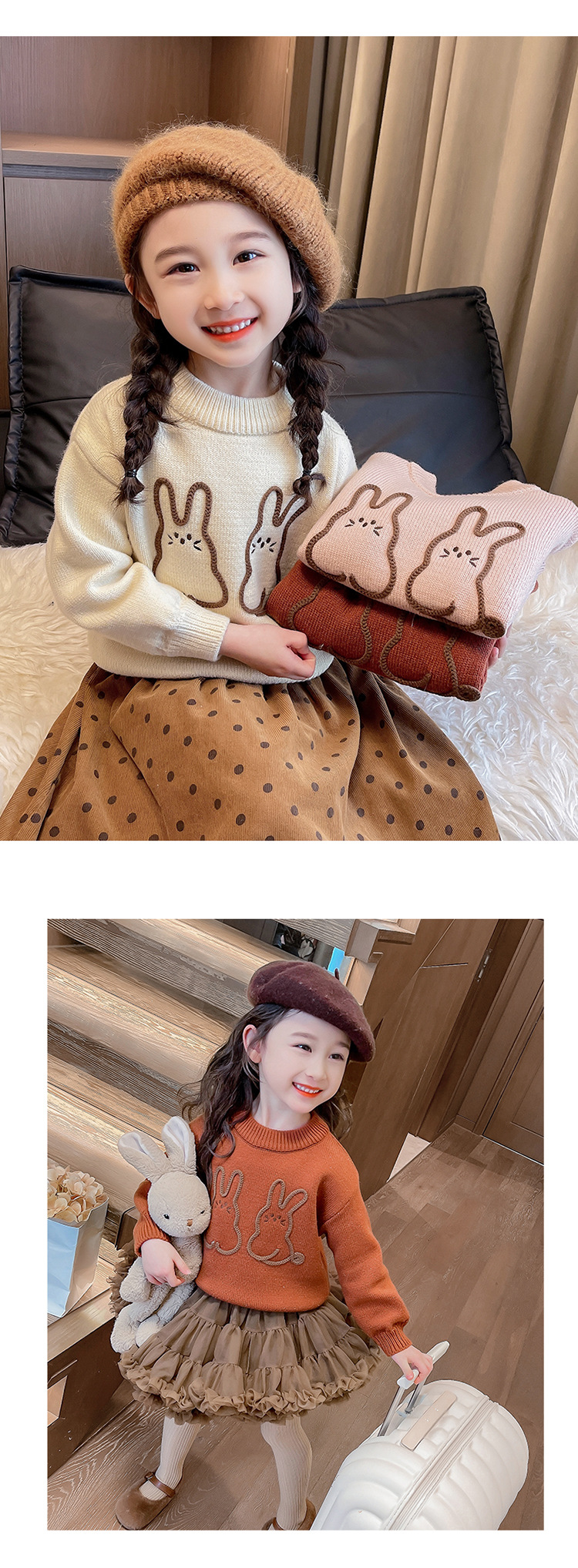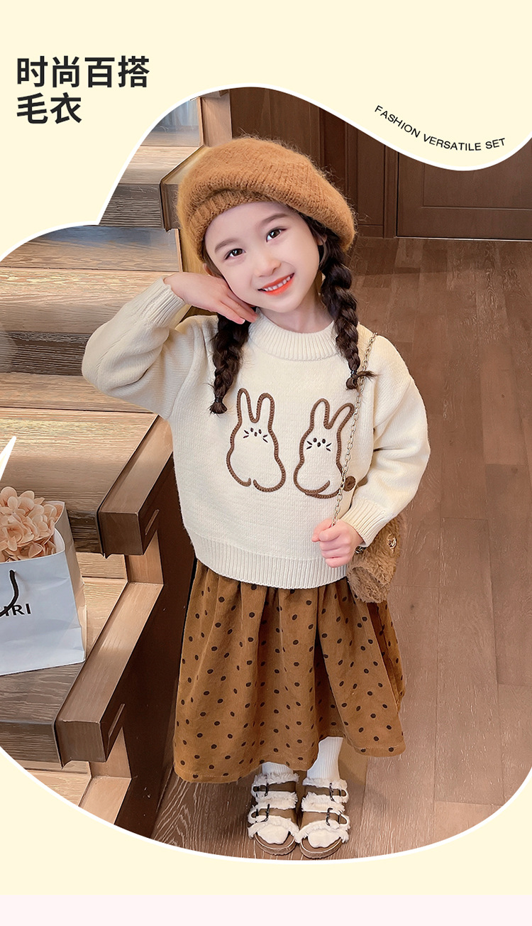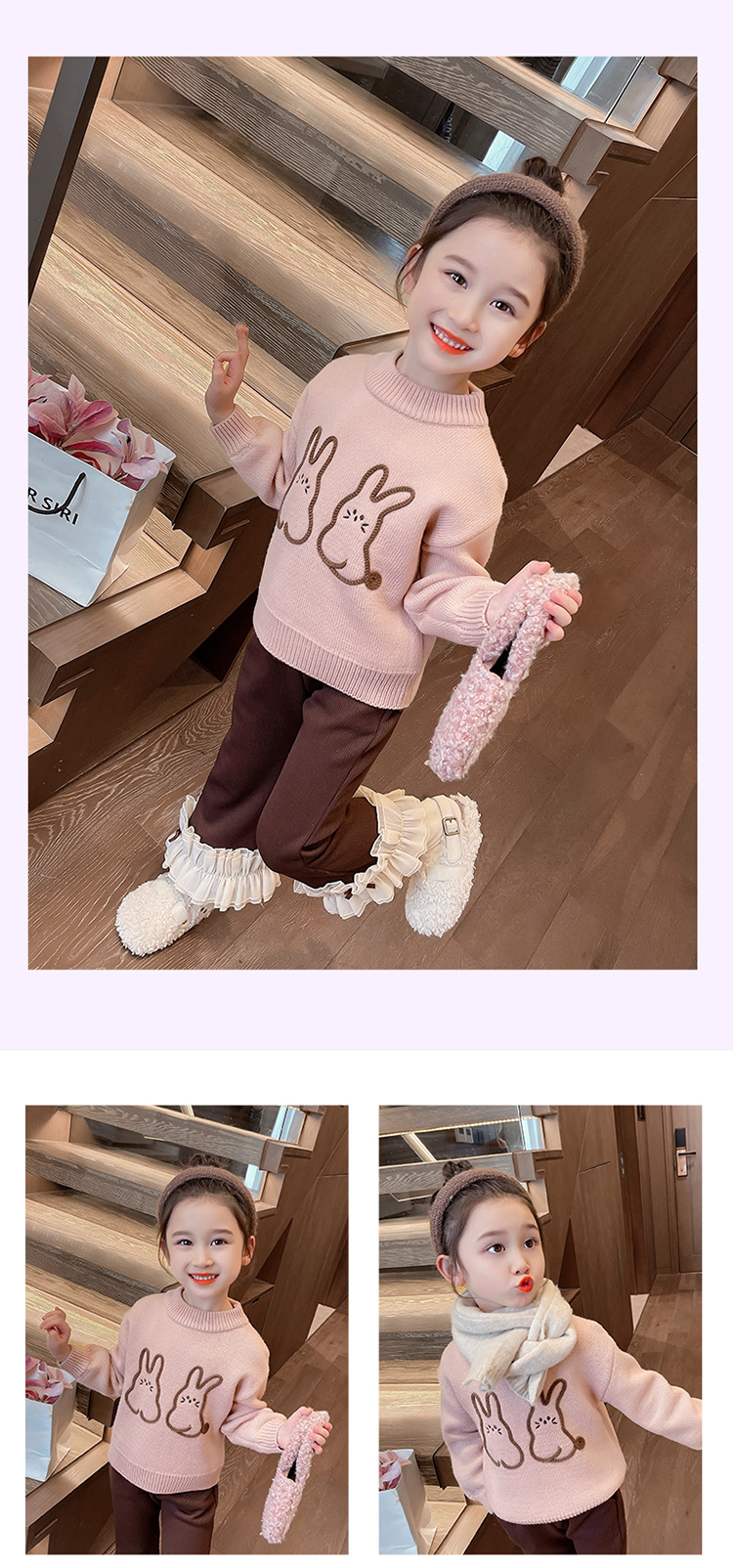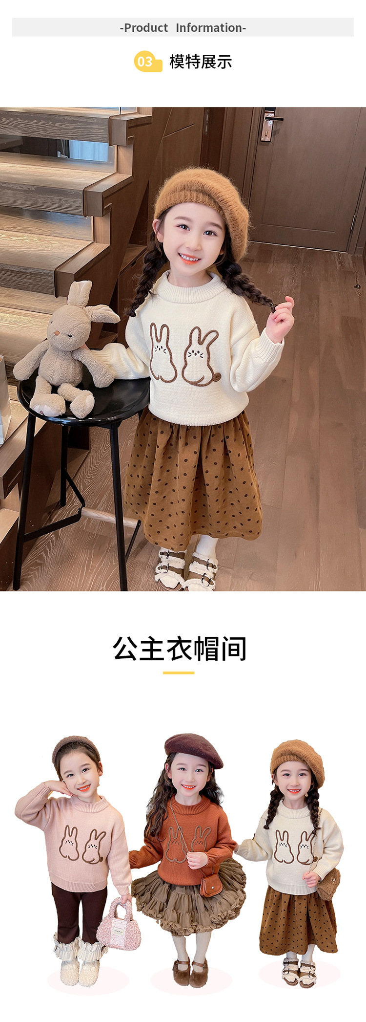 여아 스웨터 가을과 겨울 2023 새로운 니트 풀오버 어린이 아기 웨스턴 스타일 원피스 벨벳베이스 두꺼운 겨울 옷