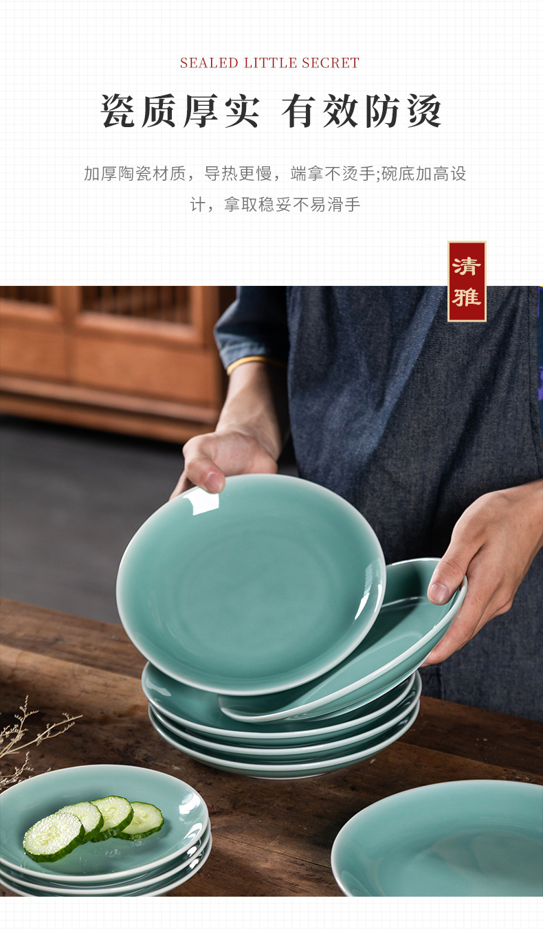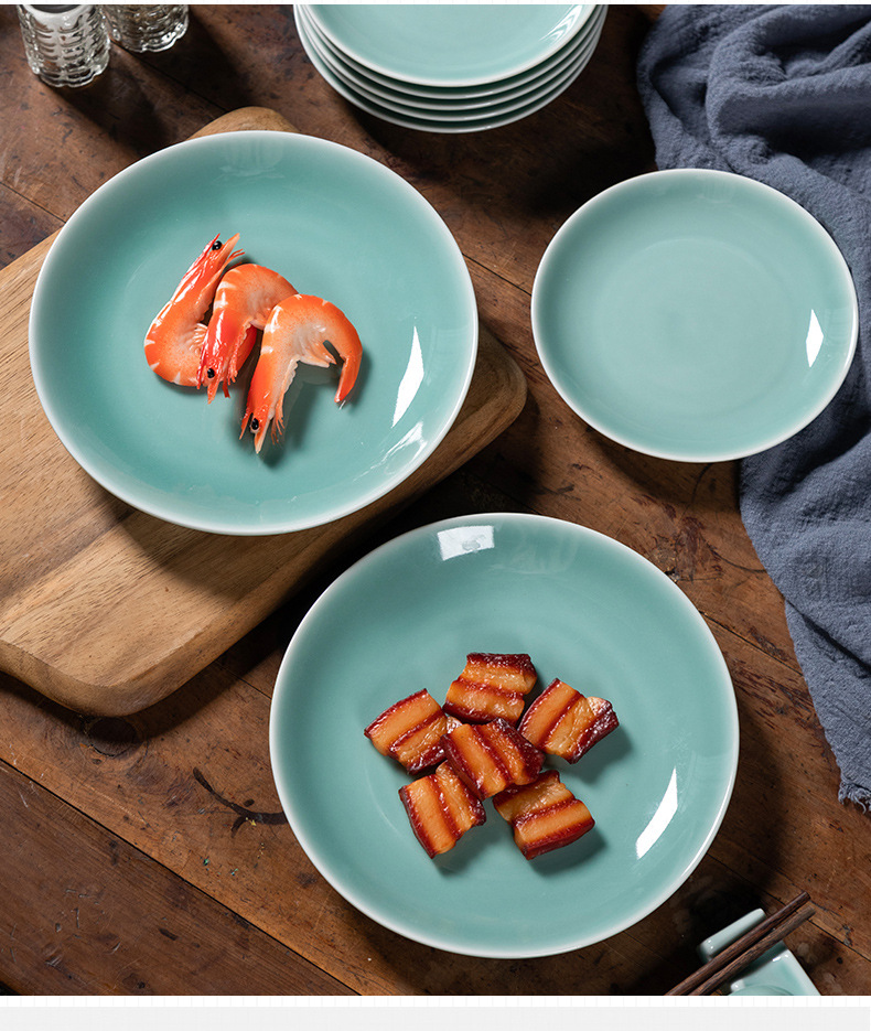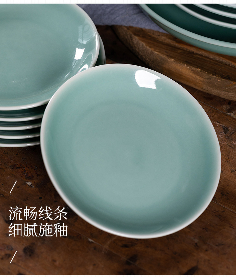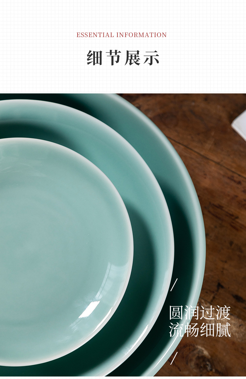 Kongshan 새로운 비 Longquan 청자 야채 접시 뼈 접시 세라믹 가정용 호텔 레스토랑 서양 음식 접시 단색 평면 접시 식기스토어 가기