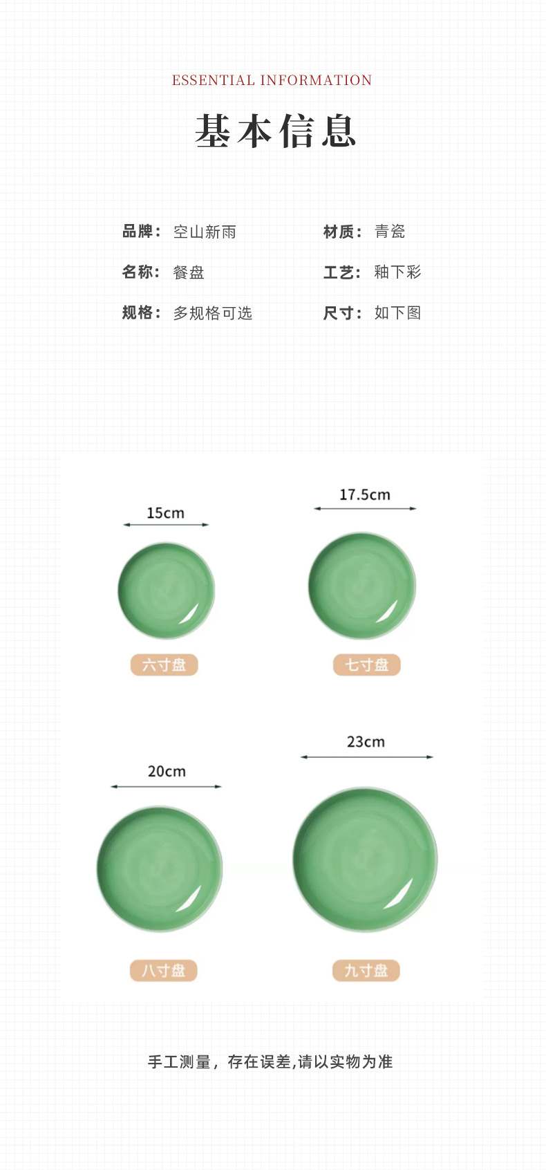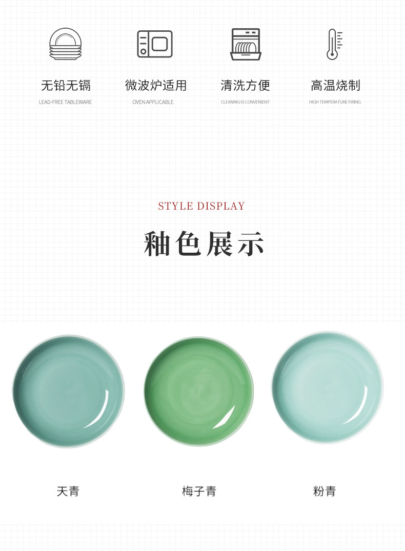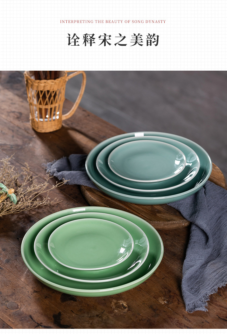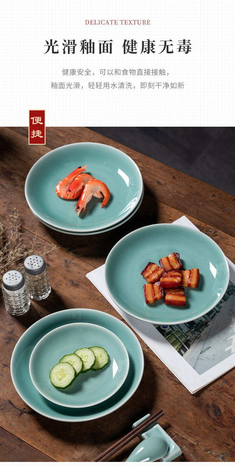 Kongshan 새로운 비 Longquan 청자 야채 접시 뼈 접시 세라믹 가정용 호텔 레스토랑 서양 음식 접시 단색 평면 접시 식기스토어 가기