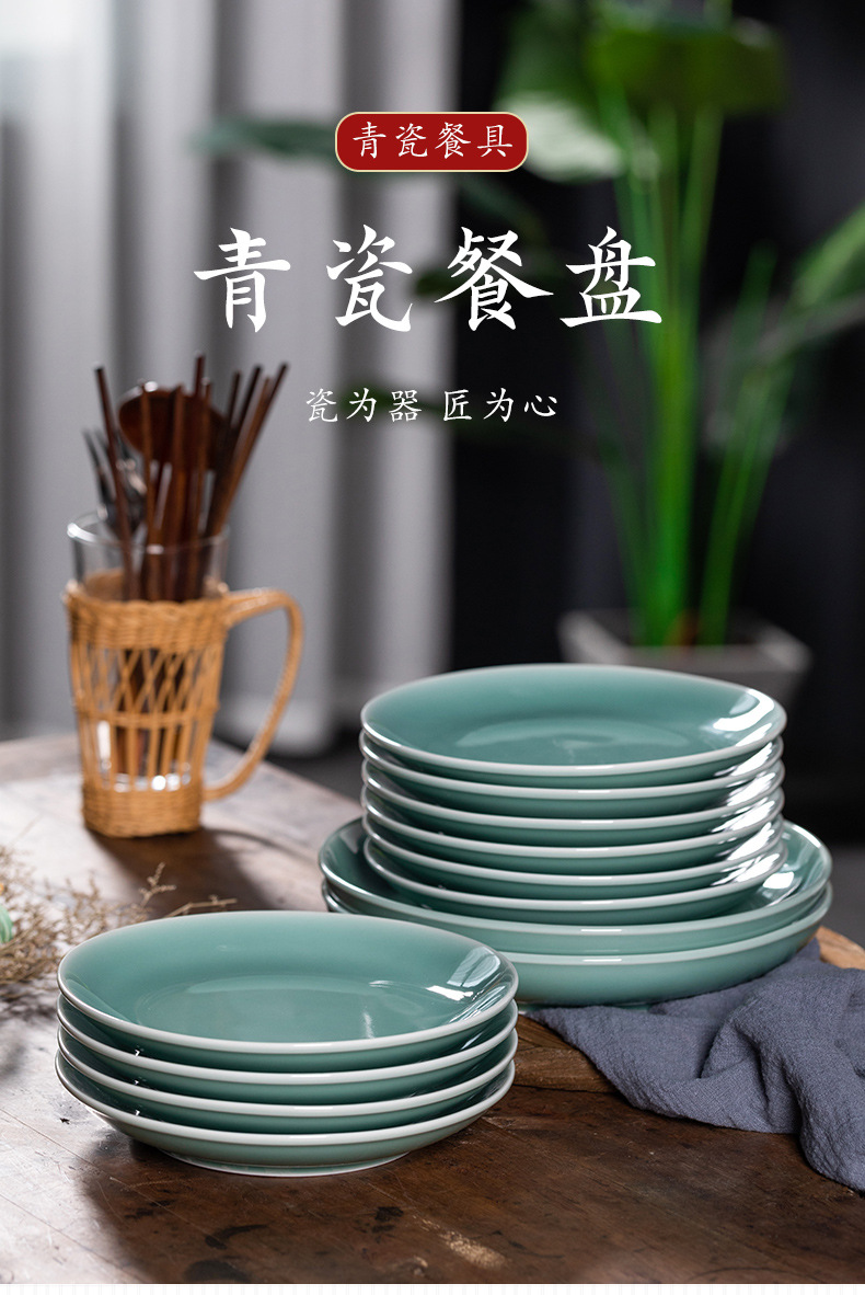 Kongshan 새로운 비 Longquan 청자 야채 접시 뼈 접시 세라믹 가정용 호텔 레스토랑 서양 음식 접시 단색 평면 접시 식기