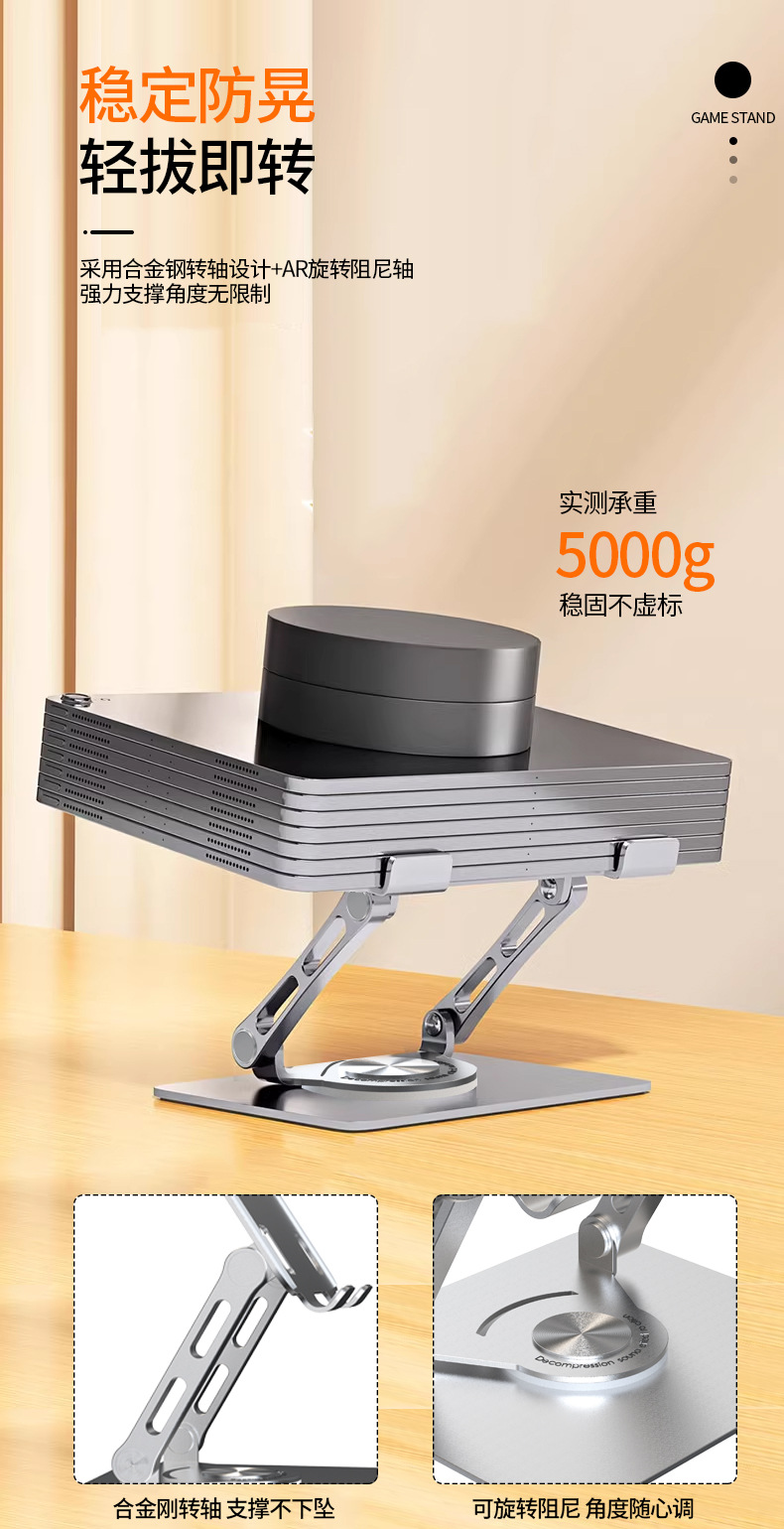 플랫 브래킷 데스크탑 알루미늄 합금 360 도 회전 접이식 휴대용 높이 냉각 지원 프레임 제조 업체 도매