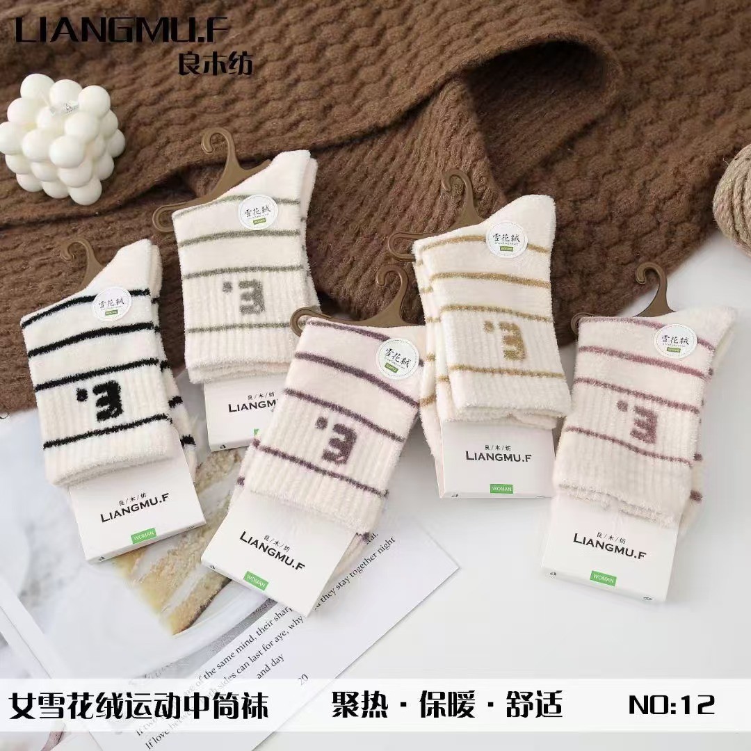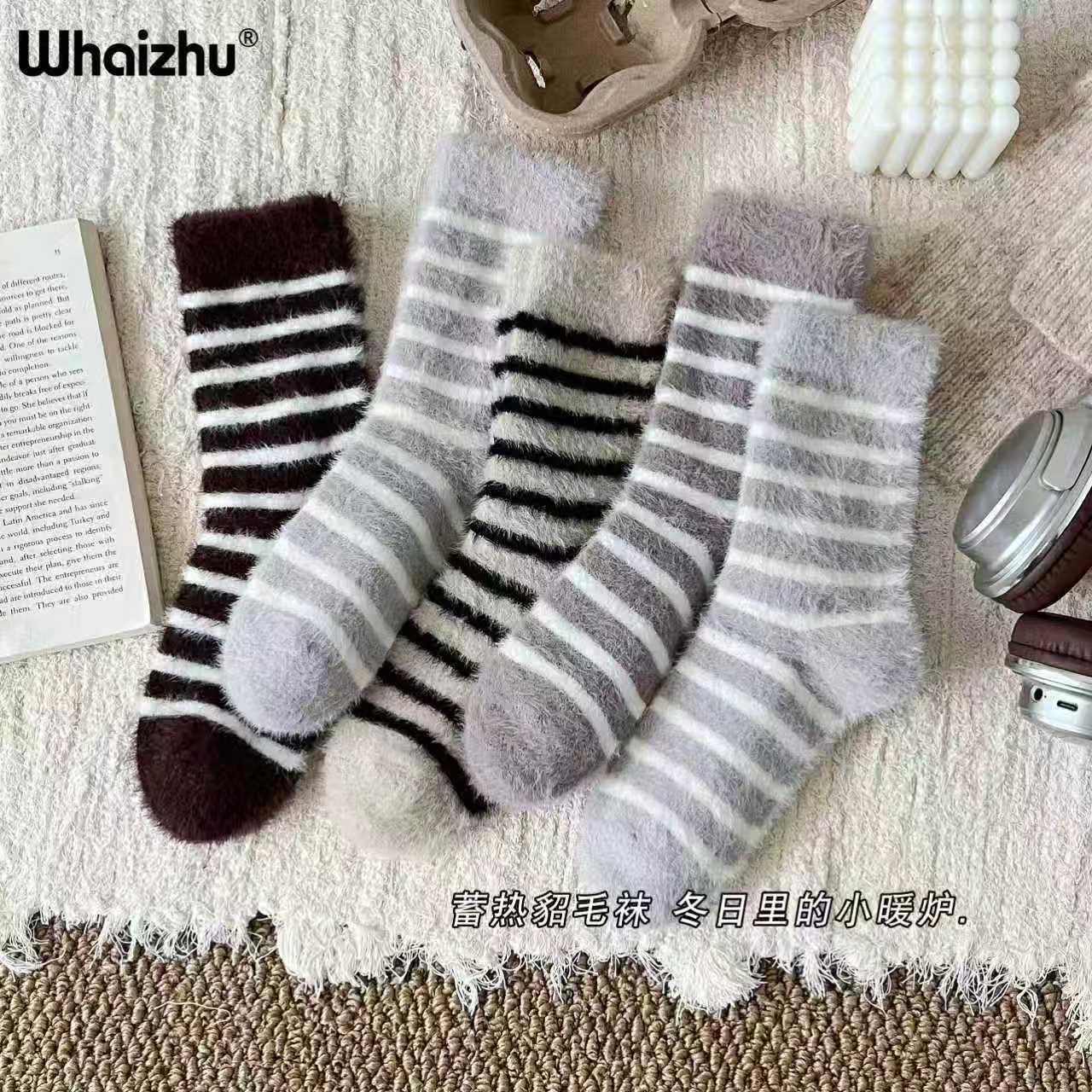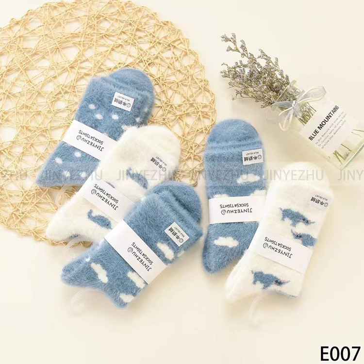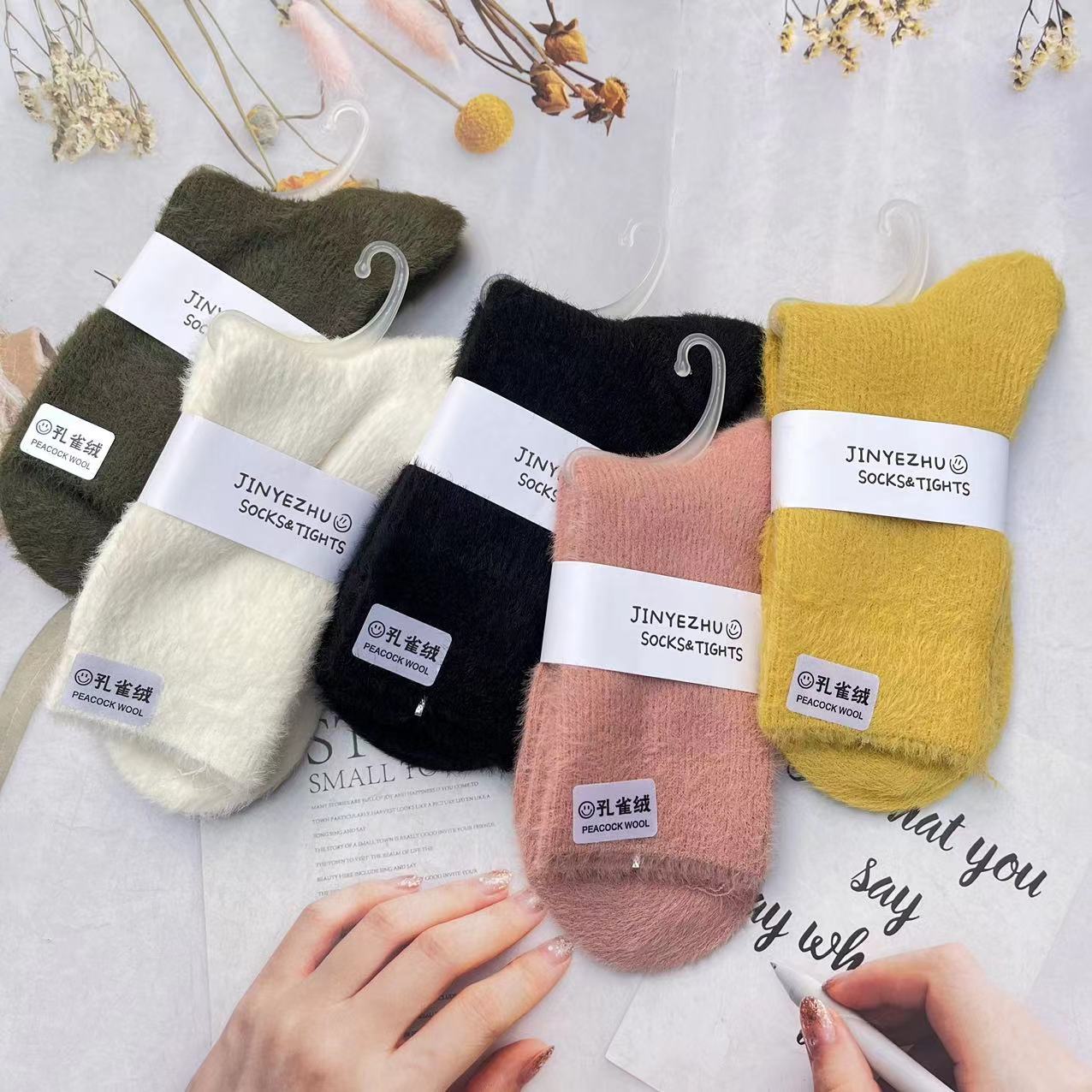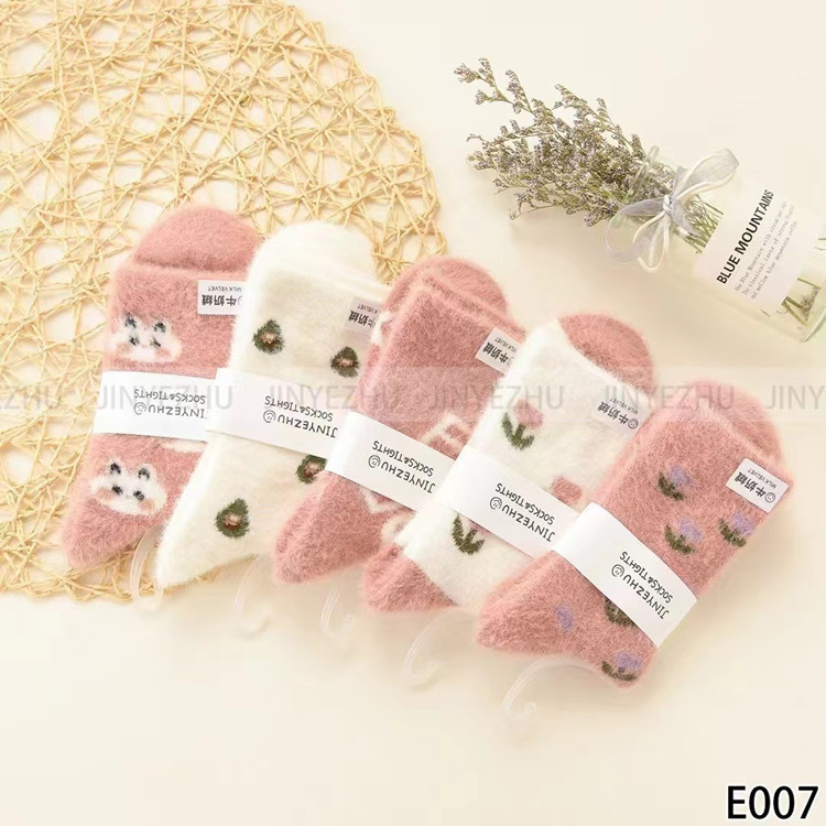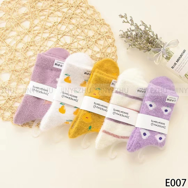 보온성 좋은 밍크털 양말, 일본 및 한국 스타일의 여성용 중목 양말, 겨울용 두꺼운 양말, 털이 복슬복슬한 산후 양말, 두꺼운 밍크털 양말스토어 가기
