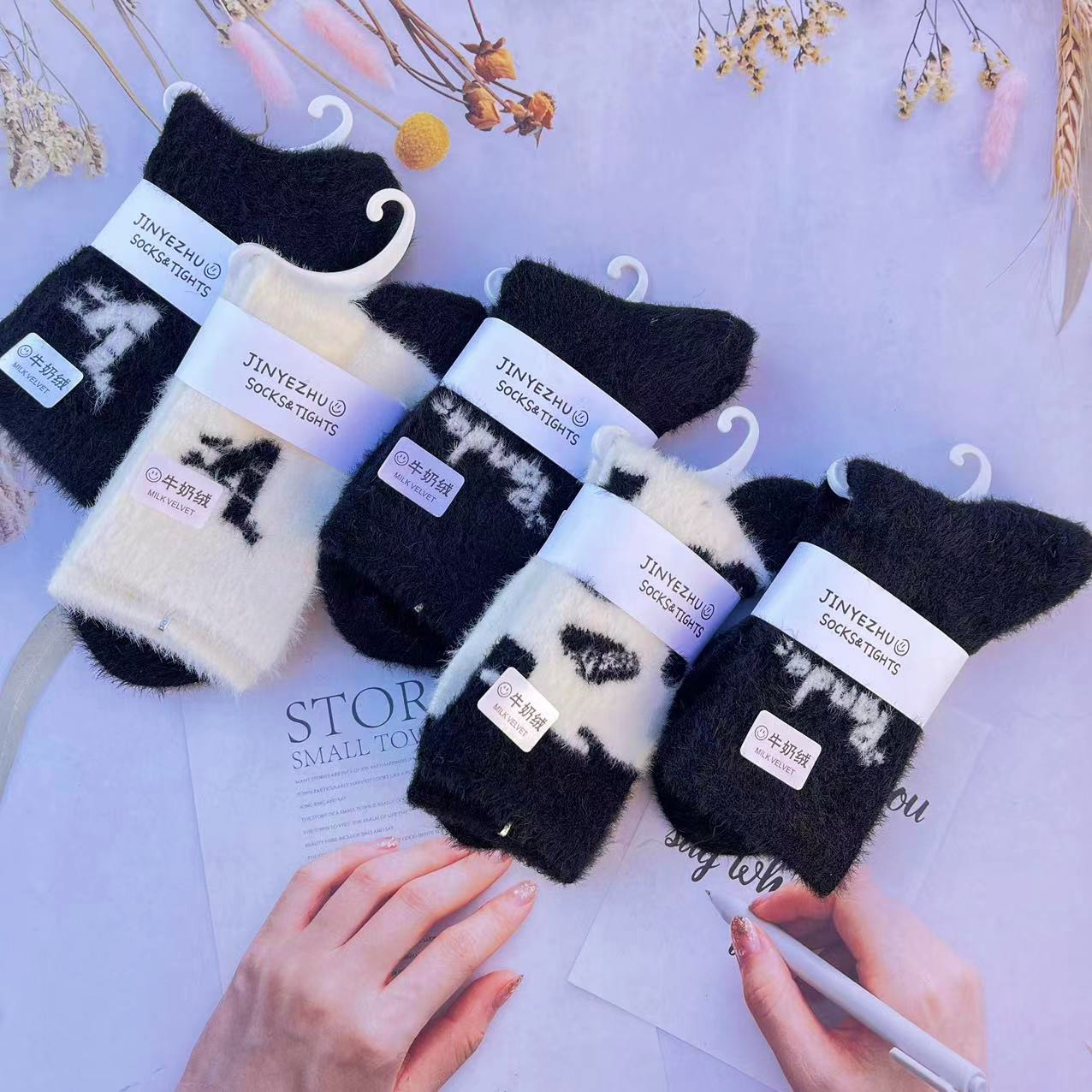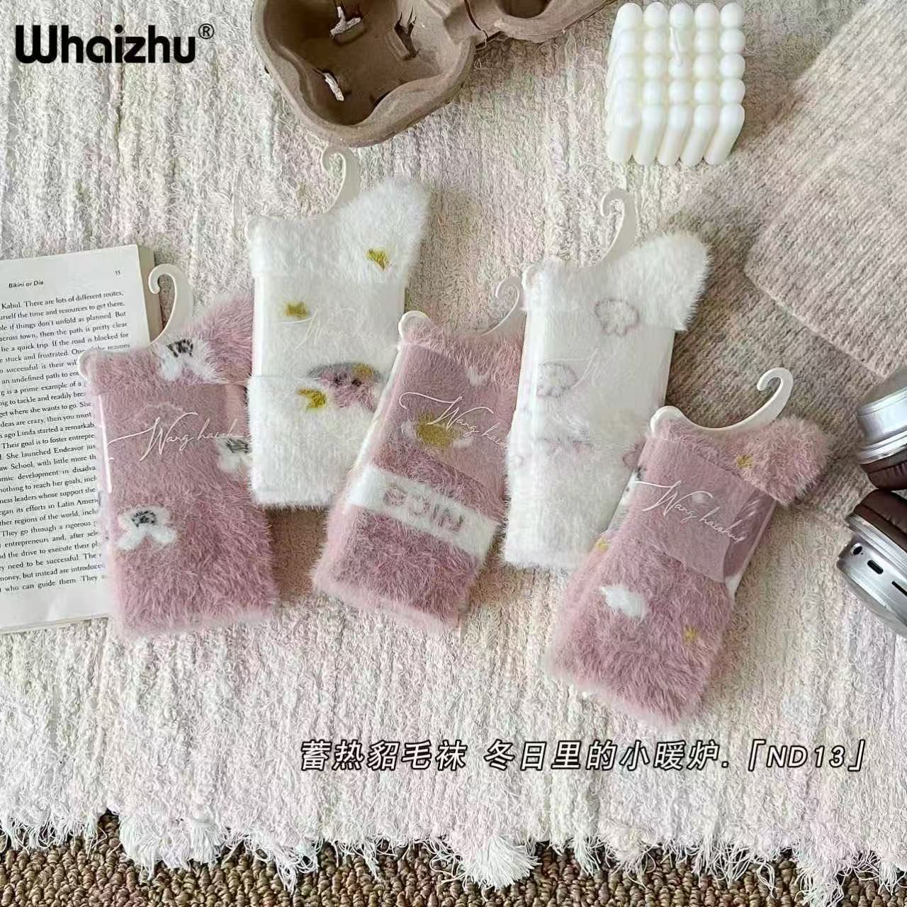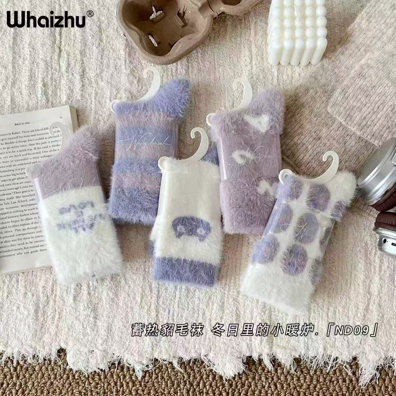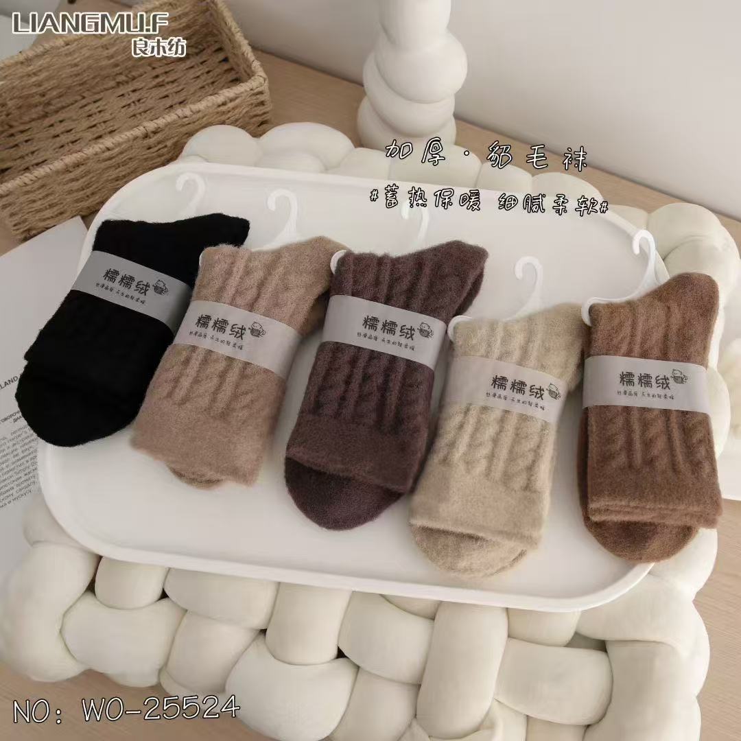 보온성 좋은 밍크털 양말, 일본 및 한국 스타일의 여성용 중목 양말, 겨울용 두꺼운 양말, 털이 복슬복슬한 산후 양말, 두꺼운 밍크털 양말스토어 가기
