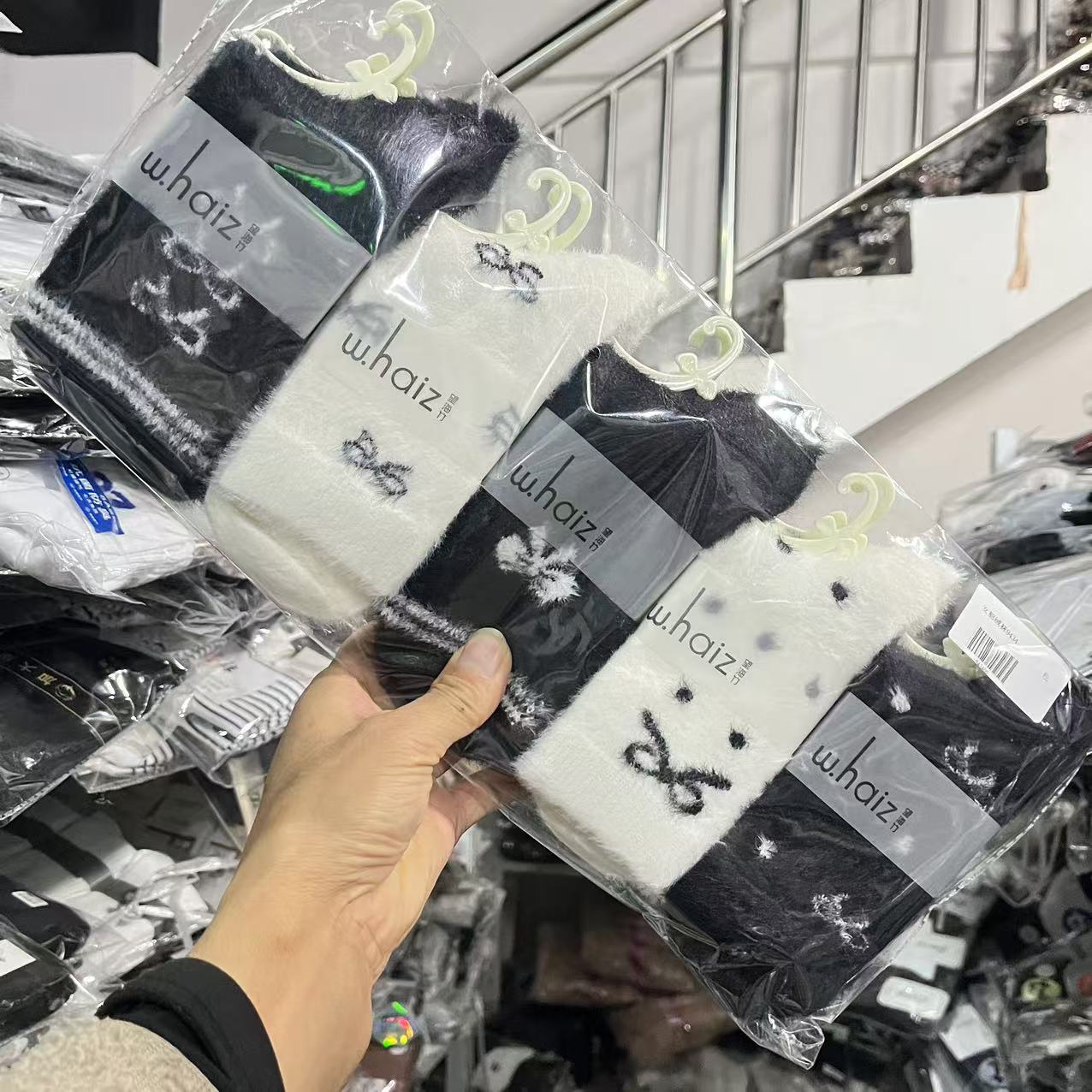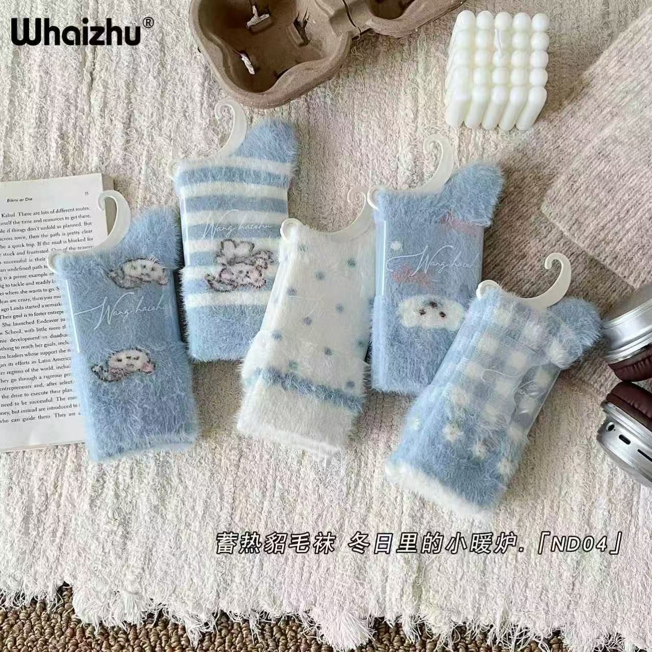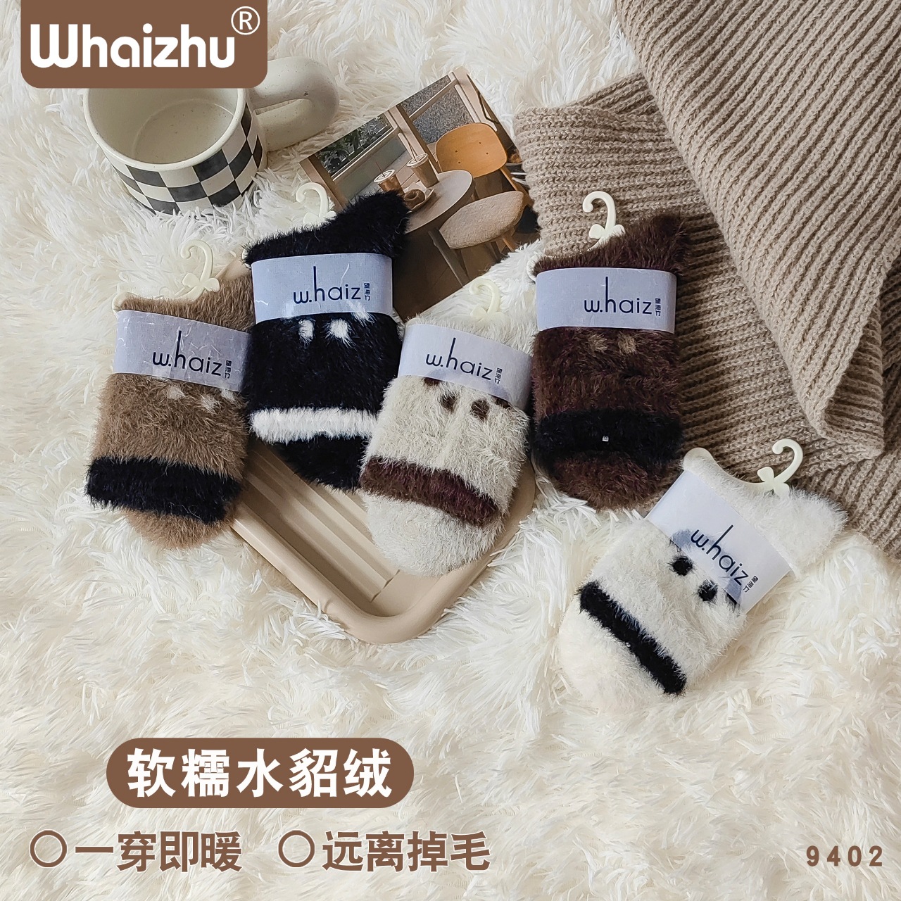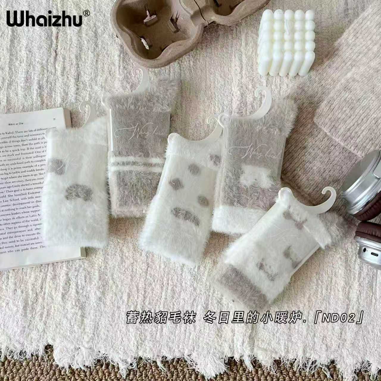 보온성 좋은 밍크털 양말, 일본 및 한국 스타일의 여성용 중목 양말, 겨울용 두꺼운 양말, 털이 복슬복슬한 산후 양말, 두꺼운 밍크털 양말스토어 가기