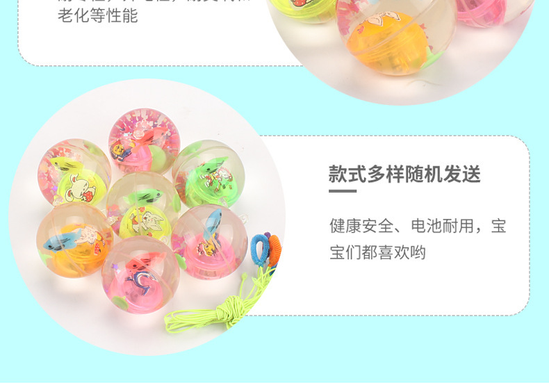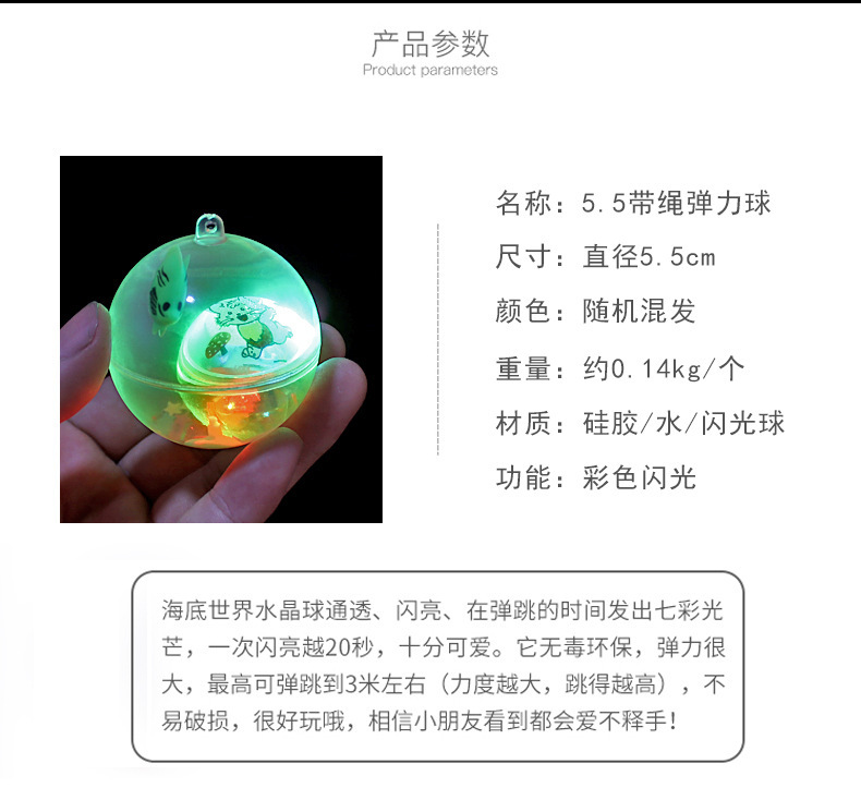 此款产品外贸出口非常热销,在弹跳的时间发出七彩光芒,十分可爱。它无毒环保,弹力很大,不易破损,很好玩哦。相信小朋友看到都会爱不释手!夜市地摊创业也是一款不错的产品