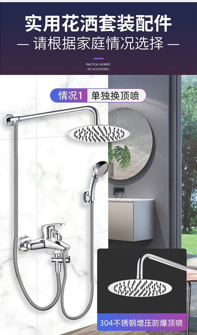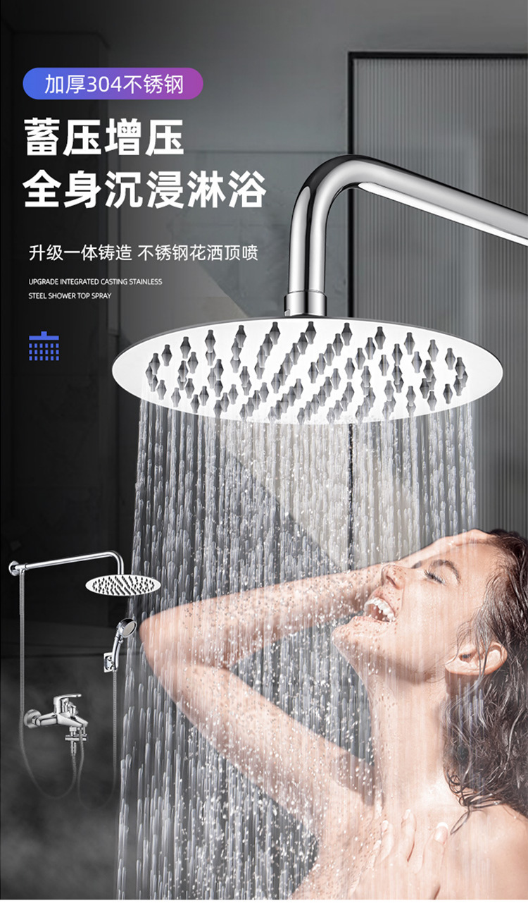 슈퍼 차저 빅 탑 스프레이 샤워 헤드 샤워 헤드 가정용 압력 욕조 히터 레인 워터 샤워 스테인레스 스틸 세트스토어 가기