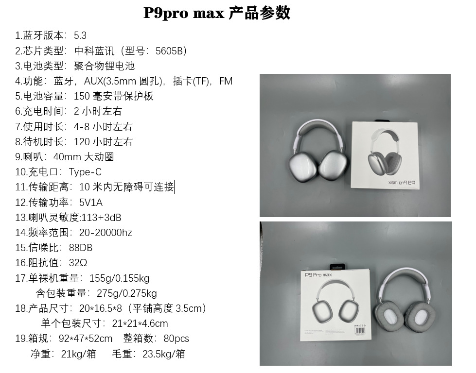 P9promax 헤드셋 무선 블루투스 크로스보더 재고 5.3 화창북 이어폰 블루투스 5.3