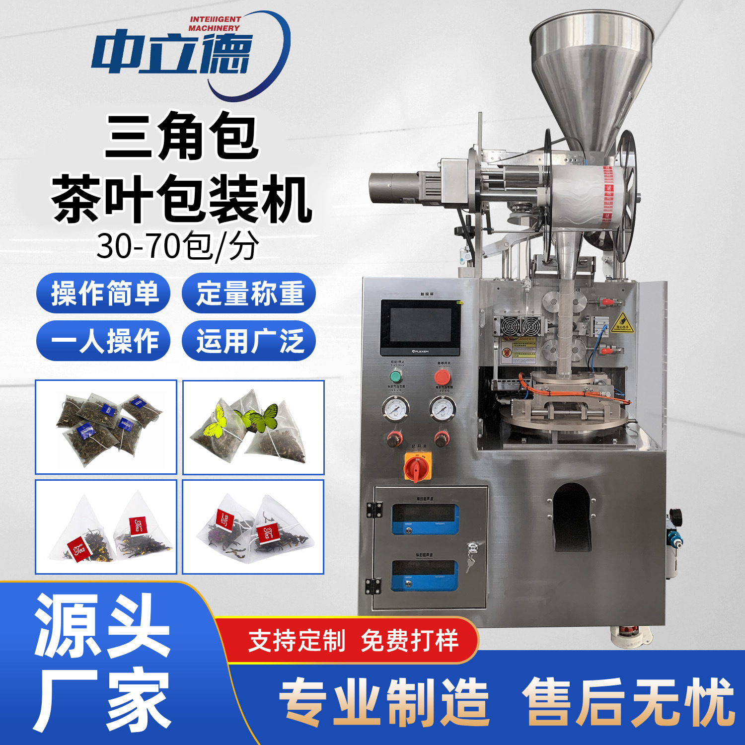 라인 라벨이있는 자동 나일론 삼각형 가방 티백 포장기 향 차 차 커피 내부 및 외부 가방 차 포장기