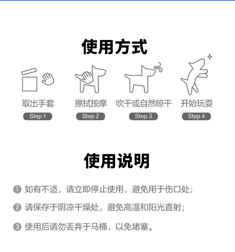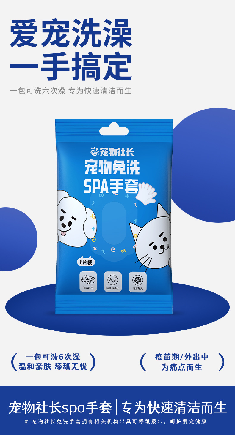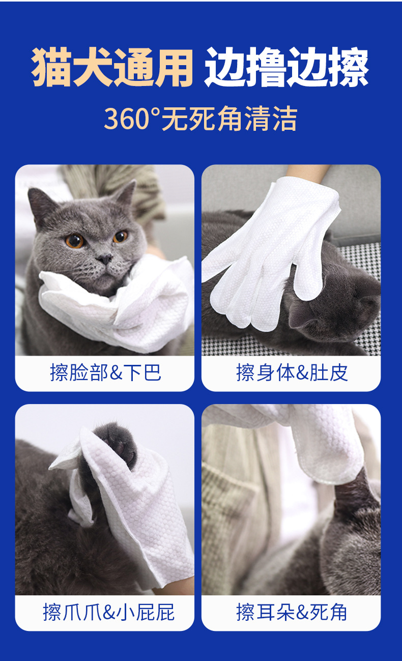 애완동물 회장 일회용 장갑 물티슈 고양이와 강아지를 닦아낼 수 있는 일회용 SPA 장갑 일회용 물티슈스토어 가기