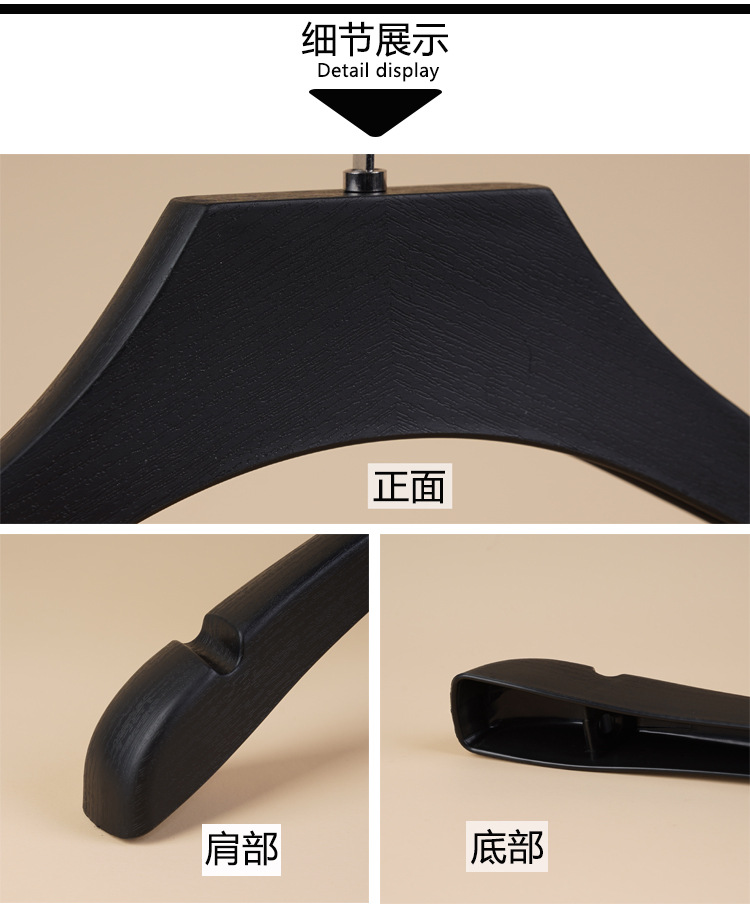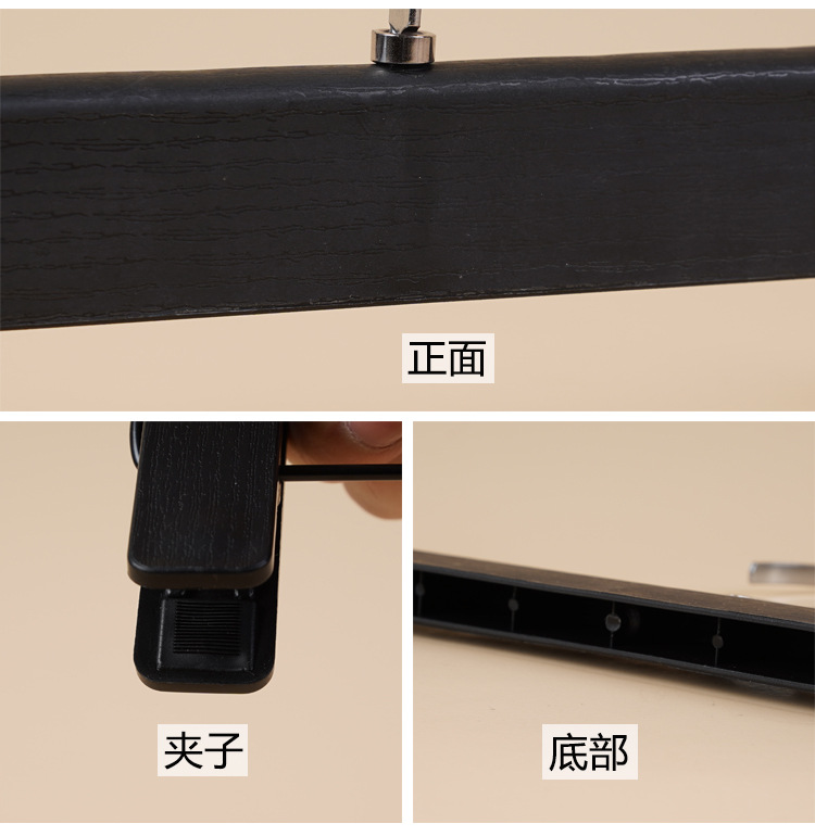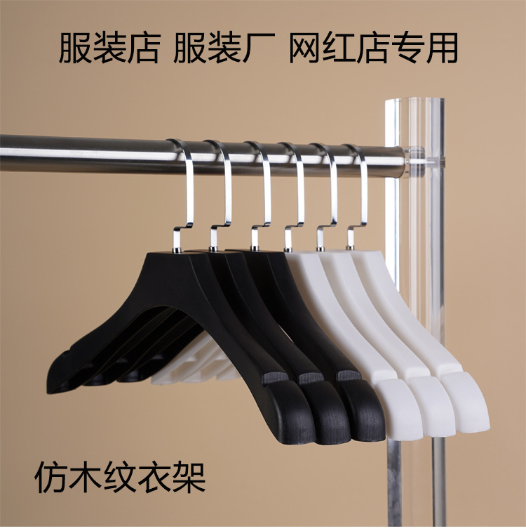 검은 플라스틱 옷걸이 모조 목재 곡물 원활한 미끄럼 방지 성인 세트 후크 남성 및 여성 의류 매장 옷걸이 도매 로고스토어 가기